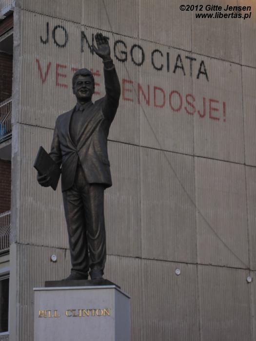 Port lotniczy w Pristinie nie powalił mnie na kolana. Terminal przypomina raczej prowincjonalny dyskont, z labiryntem kabli kłębiących się pod sufitem. Nie tak wyobrażałam sobie międzynarodowy port lotniczy w stolicy Kosowa. Samo miasto budzi mieszane uczucia i nie kojarzy się z Europą, a ulice mają raczej klimat turecko-kaukaski niż bałkański. Najważniejsze państwowe instytucje wyglądają prowincjonalnie i przez cały czas nie mogłam oprzeć się wrażeniu, że miasto, które z dnia na dzień stało się stolicą nowego państwa, nie może sobie poradzić z ciężarem niepodległościowej odpowiedzialności. Gołym okiem widać silne wpływy amerykańskie – w centrum neonowy napis „American School of Kosova” nachalnie kłuje w oczy, a z pomnika postawionego wzdłuż głównej ulicy, szacowny Bill Clinton uśmiecha się do spacerujących przechodniów, z których większość ma turecko-arabskie rysy. Z turystycznego punktu widzenia niewiele jest tu do zobaczenia, a paradoksalnie największe wrażenie zrobił na mnie makabryczny budynek biblioteki uniwersyteckiej, który według jednego z portali poświęconych turystyce, znalazł się nawet w czołówce najbrzydszych budynków świata.