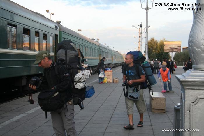 Właściwie już sama stacja w Irkucku stawia wyzwanie moim wyobrażeniom. Siedzimy na schludnej ławeczce, płytki na peronie, wokół czysto i spokojnie. Na peronie pierwszym stoi pociąg. Nasz – nie nasz? Pablo i Marcin wyruszają na misję. Ponieważ wydobycie rzetelnej informacji w tej części świata nie jest rzeczą prostą (nikt i nic nie jest tu przecież po to, żeby komuś życie ułatwiać), pertraktacje i rozmowy trwają 30 minut. Z wagonu do wagonu, od jednej funkcjonariuszki do drugiej i ciągle ten niezmienny znak zapytania na twarzy. Ów pociąg, który spokojnie stoi sobie na peronie jest do Ułan, ale rzekomo nie nasz. I jeszcze trochę kręcenia się w kółko, dreptania w te i wefte. I nagle, zupełnie magicznie pociąg okazuje się być tym, na który mamy bilet.