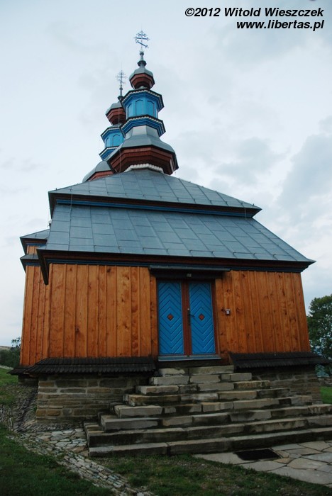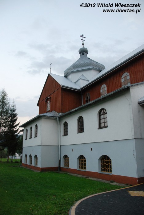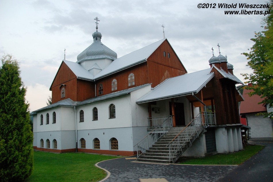 Druga z komanieckich cerkwi powstawała w roku 1988, a więc jest stosunkowo młoda. Mimo to jest to ponoć pierwsza cerkiew konsekrowana już w powojennej Polsce! Świątynia ma dość dziwną konstrukcję, na kamiennej kondygnacji ustawiono bowiem odrestaurowaną drewnianą cerkiew przeniesioną tu ze wsi Dudyńce. Przy cerkwi istniało muzeum kultury łemkowskiej, jednak z braku miejsca zostało ono zlikwidowane, a część eksponatów przeniesiono do skansenu w Sanoku.