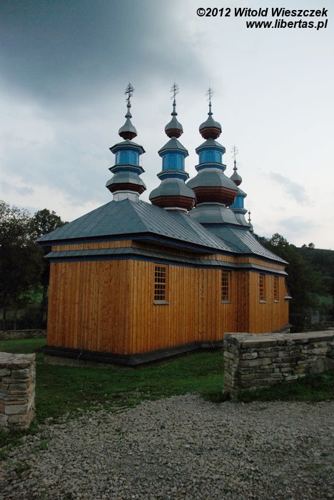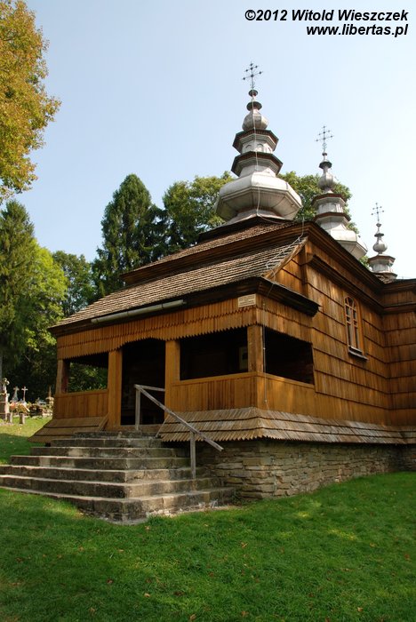 Oryginalną cerkiew greckokatolicką w stylu wschodniołemkowskim wybudowano w tym miejscu w 1802 roku. W 1834 roku dobudowano dzwonnicę bramną, a dwa lata później – zakrystię. W 1963 roku świątynia została grekokatolikom odebrana i obecnie jest to cerkiew filialna prawosławna.