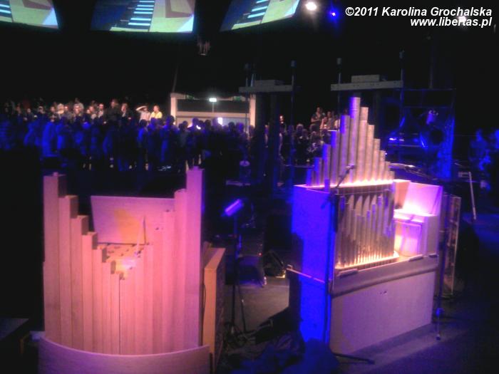 Na potrzeby nowej płyty Björk z pomocą kilku zapaleńców stworzyła instrumenty, które odegrały także kluczową rolę we wczorajszym widowisku. Gameleste to nowa odsłona czelesty, w której elementy srebrne zastąpiono wykonanymi z brązu, aby uzyskać bogatszy dźwięk. Podczas koncertu można było usłyszeć ten instrument głównie w utworach z nowej płyty m.in. Crystalline (nota bene to pierwszy singiel promujący nowy album, fantastyczny!). Organy piszczałkowe zostały tak zmodyfikowane, aby artystka mogła nimi sterować za pomocą aplikacji z iPad, co zresztą czyniła ku uciesze publiczności.