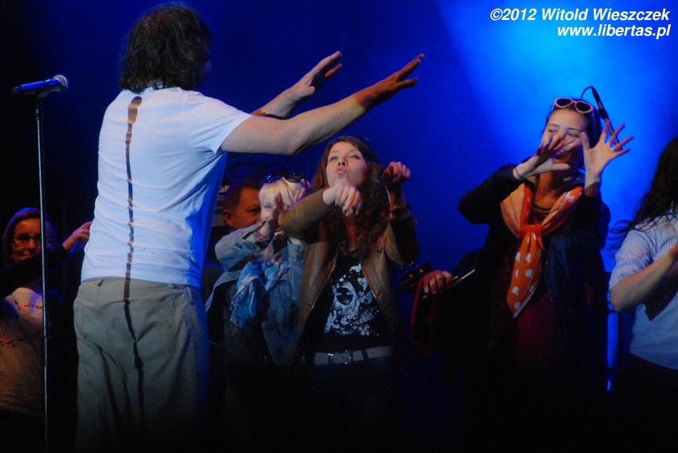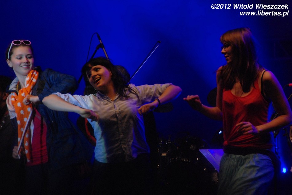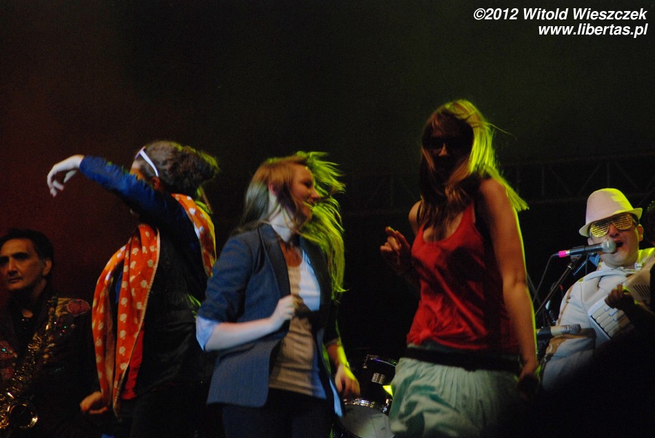 Emir Kusturica i Orkiestra Zakaz Palenia (jak można by chyba przetłumaczyć nazwę) nie zamierzali się zresztą ograniczać tylko do muzykowania, a bałkańskie umpa-umpa było tylko częścią przygotowanego spektaklu i już od pierwszego utworu widać było, że nie należy nastawiać się na zwykły koncert. Tryskający humorem i energią Dejan Sparavalo biegał po scenie w dziwnym szlafroku, pocierając swoje skrzypce z żywiołowością Nigela Kennedy'ego. Najwyraźniej coś go trapiło, czegoś mu brakowało! Może kobiecej ręki, wkrótce zaprosił bowiem na scenę kilkanaście przedstawicielek płci piękniejszej, najwyraźniej by zapewnić sobie odpowiednią oprawę. Nie był to zresztą ostatni raz, gdy publiczność była na scenę zapraszana.