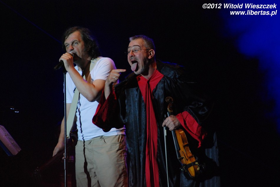 Kończąc ten może przydługi wstęp, dodam tylko, że koncert „spadł” na mnie dość niespodziewanie, więc nie miałem czasu wcześniej się na niego odpowiednio przygotować, o ile bowiem dokonania Kusturicy jako reżysera są mi dość dobrze znane, to już Kusturicy-muzyka kompletnie nie. Owszem, ścieżkę do filmu Czarny kot, biały kot oczywiście słyszałem, ale — jak pewnie wielu — kojarzyłem ją dotąd mylnie z Goranem Bregovićem, a nie kolegami reżysera z zespołu. Cóż, najwyższy więc czas na muzyczną reedukację!