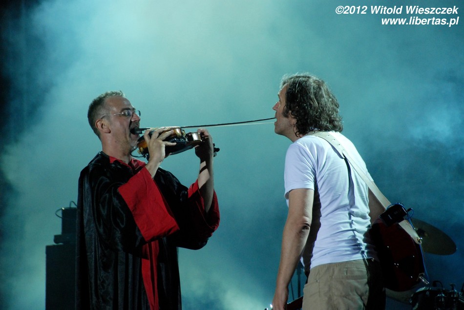 Po przerwie technicznej na scenie pojawili się muzycy serbskiego zespołu Emir Kusturica & No Smoking Orchestra. Historia tego ciekawego przedsięwzięcia sięga roku 1980, kiedy to w Sarajewie, wówczas w Jugosławii, narodził się zespół Zabranjeno Pušenje i dość szybko zdobył sporą popularność. Od 1987 roku w zespole okazjonalnie na basie pogrywał sobie Emir Kusturica, niestety wojna domowa przerwała działalność grupy i trwale ją podzieliła. Część muzyków pod oryginalną nazwą wznowiła działalność w Zagrzebiu. Pozostali działali w Belgradzie, zmieniając po jakimś czasie nazwę na No Smoking Orchestra, a ostatecznie na Emir Kusturica & No Smoking Orchestra. Co prawda Kusturica w roku 2005 się ochrzcił, przyjmując serbskie imię Nemanja, ale zespół kolejny raz nazwy już nie zmienił. Zresztą dla większości fanów Serb nadal pozostaje Emirem i zachwycona katowicka publiczność również będzie go pod koniec koncertu nawoływała takim właśnie imieniem.