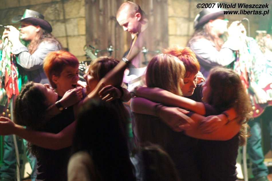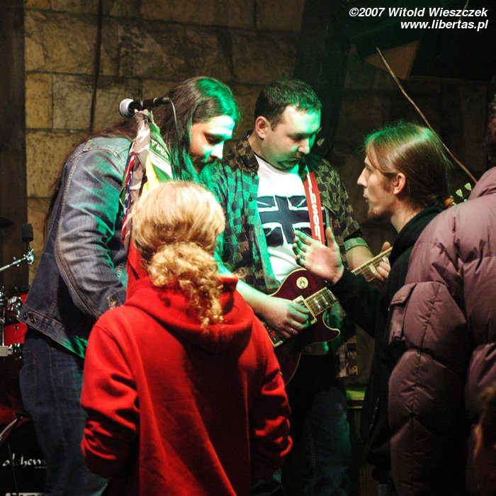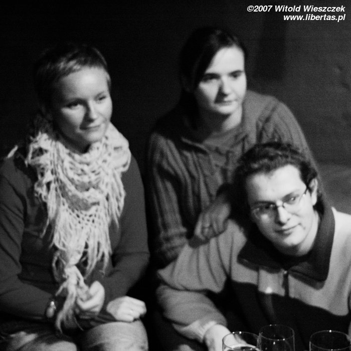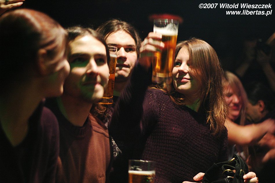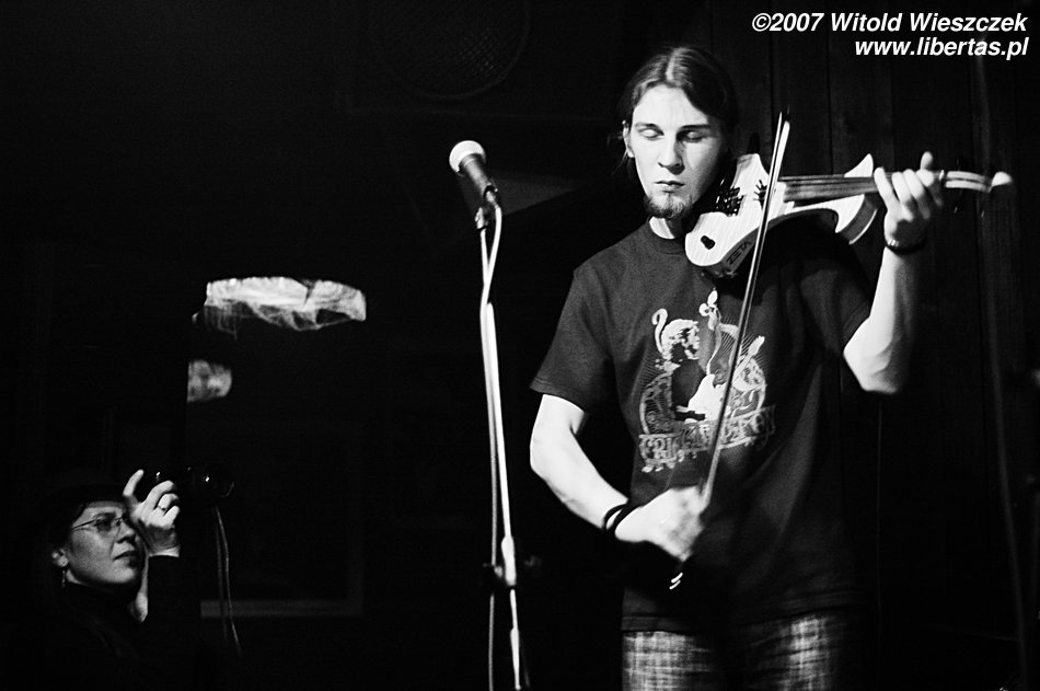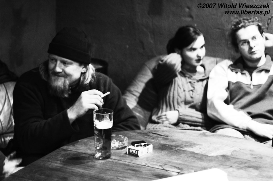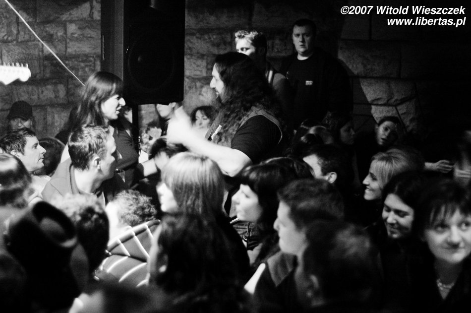 Pod koniec miałem okazję wychylić z Osłami lufę żołądkowej, podziękować Jasiowi za wspaniały koncert i poznać Mariusza Korczyńskiego (którego wokal zrobił na mnie równie wielkie wrażenie, jak skrzypki Janka) oraz Maxa (który palił papierosa, zagryzał go chlebem ze smalcem i wybijał pałeczkami rytm na krześle)! Nie mniejszą przyjemnością było poznanie przesympatycznych dziewczyn (chyba przyprowadzonych przez Piotrka): Basi, która miała fajny nie tylko biust i Martynki, w której rozbrajającym uśmiechu oczywiście od razu się zakochałem!