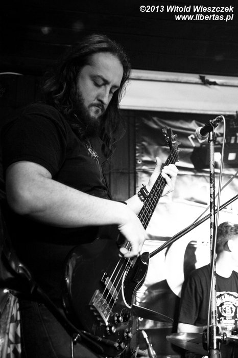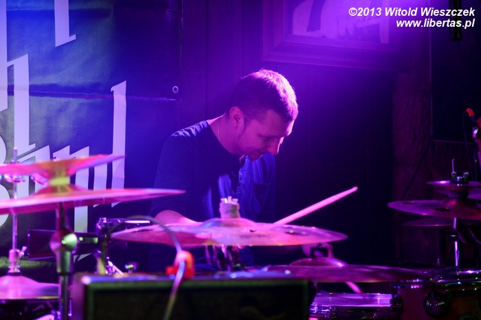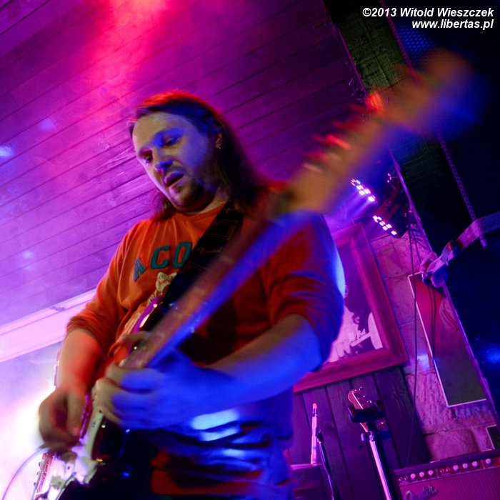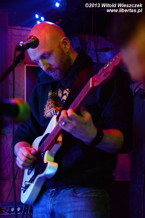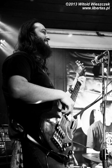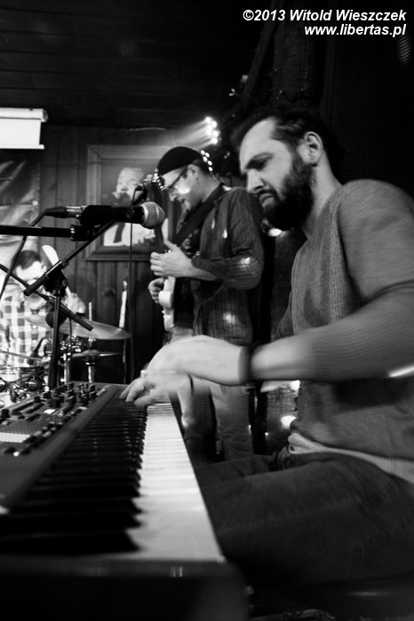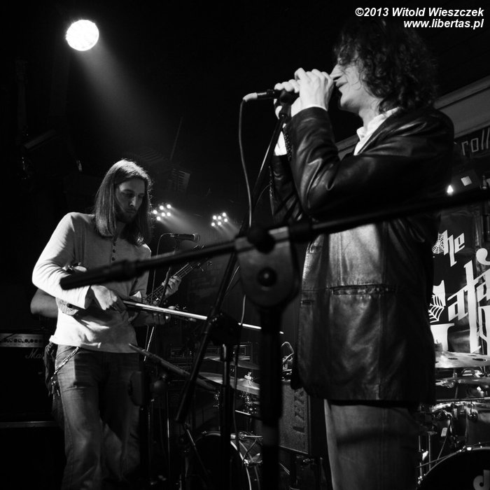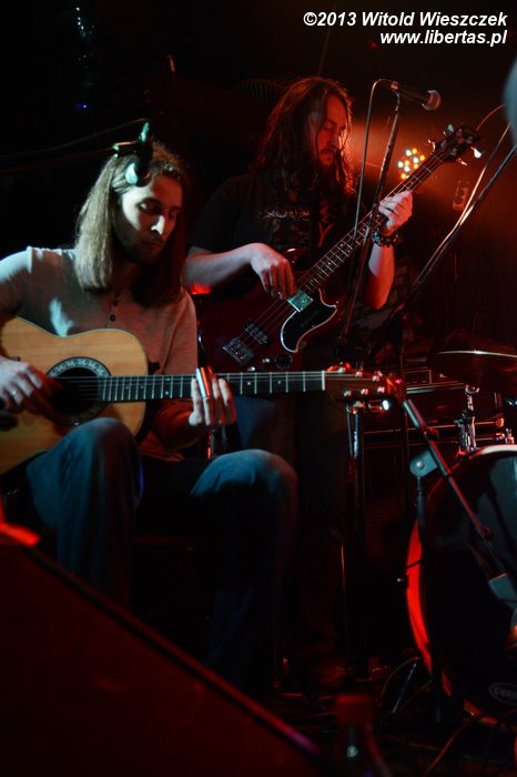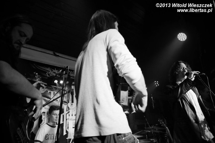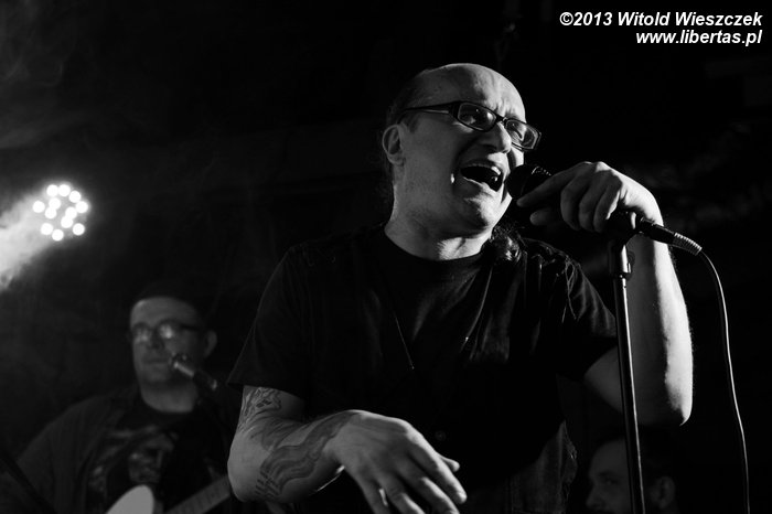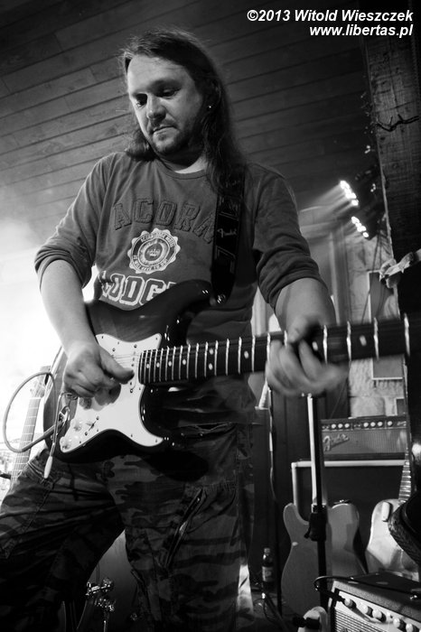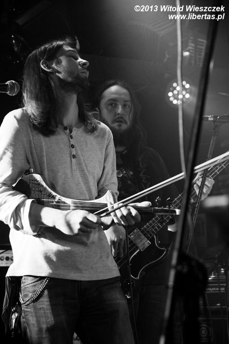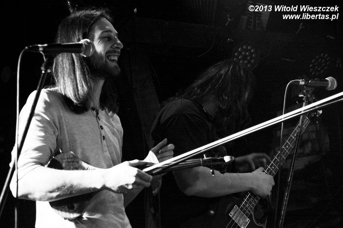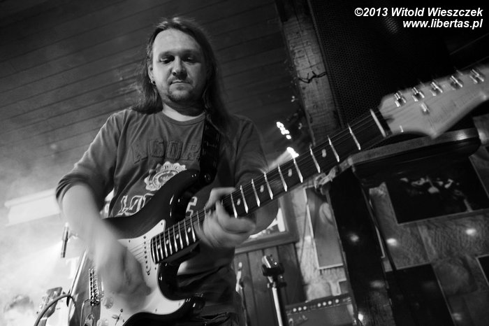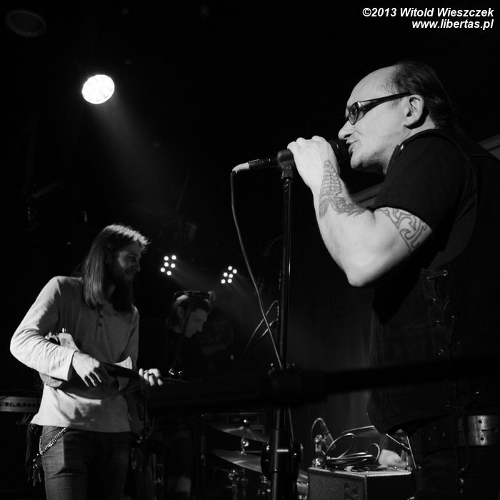 Zespół zagrał chyba wszystkie utwory ze swojego pierwszego, długo wyczekiwanego albumu, a ponieważ gościnnie na płycie wystąpiła cała masa świetnych muzyków, to i w Leśniczówce na scenie robiło się momentami ciaśniej, niż przewidują normy BHP. Dobrze, że podest się nie zawalił, bo chwilami wyglądało, jakby ognie piekielne już się za grajkami pojawiały. Była to jednak zasługa tylko piekielnie dobrej muzyki, a nie żadnych tam sił nieczystych. Wracając zatem do meritum: pierwszym gościem zespołu był Mariusz Korczyński, wokalista udzielający się w wielu muzycznych projektach, między innymi również w Osłach.