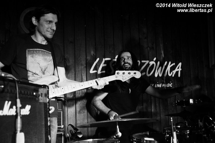 Dotarłem odrobinę spóźniony i z trudem udało mi się przedrzeć do baru. Bywało w Leśniczówce tłoczno, ale takiego tłumu chyba jeszcze tutaj nie doświadczyłem. Właśnie gra pierwszy zespół – Around The Blues – ale niestety nie będzie dane mi zobaczyć ich z bliska, bo przepychać się łokciami nie lubię, a do sceny dojść się kulturalnie już naprawdę nie da. Sukcesem jest utrzymanie się przy barze. Bilety na koncert kupiło ponad 220 osób, a dla tych, którzy spóźnili się bardziej niż ja, miejsca po prostu nie wystarczyło! Tak, tak, Drodzy Państwo! Ponoć wielu wielbicieli dobrej, żywej muzyki odbiło się dzisiaj od magicznych drzwi Leśniczówki i odeszło z przysłowiowym kwitkiem!