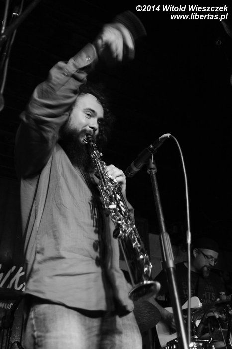Już na początku zabrzmiały autorskie utwory zespołu takie jak Devil, Kantrowiec czy Trójkącik, a następnie, jak to zwykle na koncertach świątecznych bywa, na scenie zjawiają się zaproszeni goście. Pierwszym z nich jest – uwaga! – Papierz1! I tak sobie kombinuję, że może to dlatego zabrakło biletów? W końcu nie co dzień na scenie występuje najprawdziwszy Papierz z saksofonem. Każdy chciałby to zobaczyć!