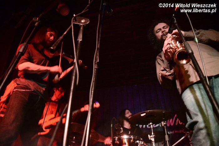 Gdy goście zeszli ze sceny zabrzmiała bardzo smakowita Cytrynówka, a później genialny Whipping Post – numer, którego mogę słuchać bez końca, zwłaszcza w takim wykonaniu. Noga sama wybija rytm, a ciało rusza się jak w transie. Ależ oni grają! Ma się wrażenie, że muzyka wypełnia szczelnie całą przestrzeń, że pomiędzy uderzeniami dwóch rozpędzonych perkusji, basem, gitarą, klawiszami i skrzypcami nie ma już na nic miejsca. Jednocześnie wszystkie te dźwięki wcale nie są ciężkie, nie przytłaczają, wręcz przeciwnie, zdają się człowieka chwytać za członki i machać nim jak marionetką. Dosłownie można odlecieć! Ale tego nie da się opisać, to trzeba poczuć na własnej skórze! Te ciarki, które przechodzą po plecach w kulminacyjnym momencie utworu, gdy skrzypce z gitarą z pasją wspinają się po pięciolinii, coraz wyżej i wyżej. Jan Gałach Band koncertuje w całym kraju, gdy będzie przejeżdżał w Waszej okolicy, to obowiązkowo trzeba się na koncert wybrać. Nie pożałujecie!