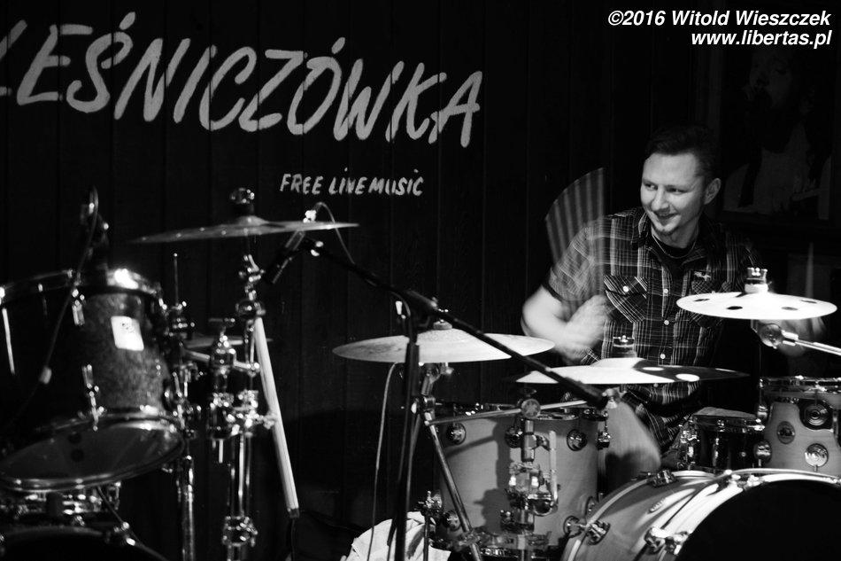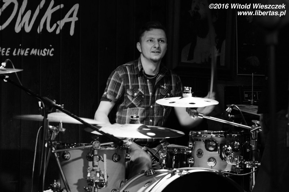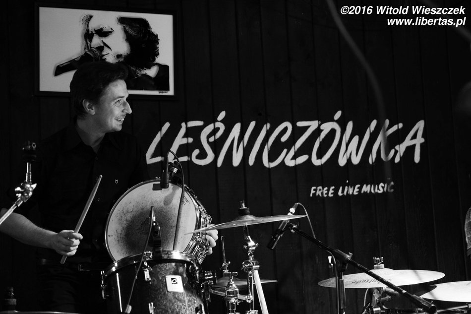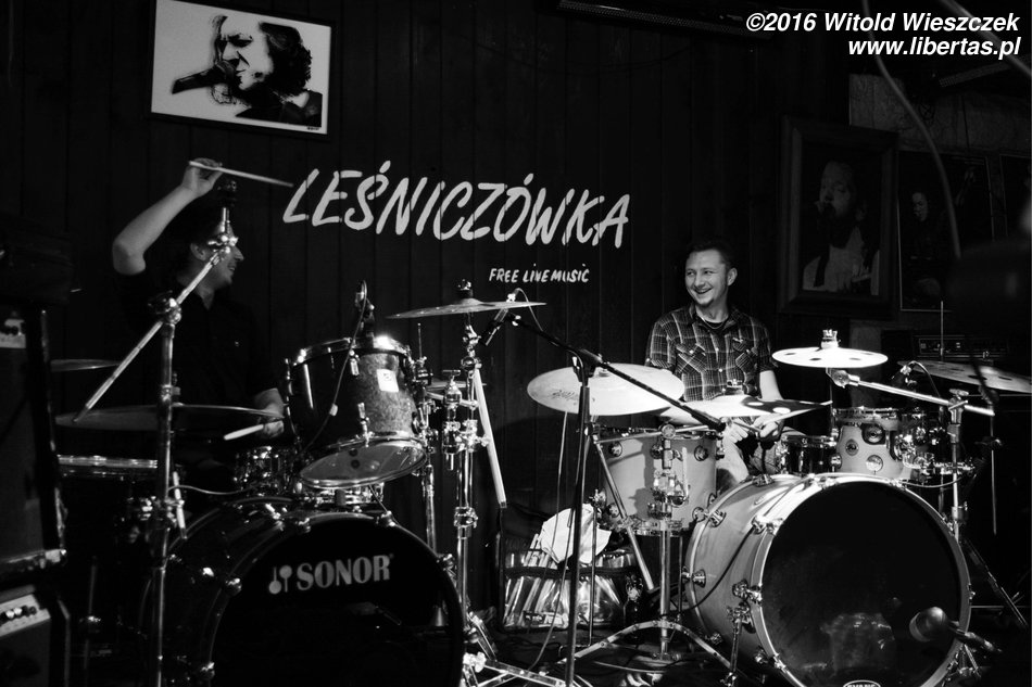 Następnie do zespołu dołączył gość z dalekiej Australii. No może nie dosłownie z Australii, ale powiedzmy, że godnie reprezentował w Leśniczówce zespół AC/DC. Mowa oczywiście o wokaliście zespołu 4 szmery Robercie Mastalerzu, czyli Sierściu. Co tu dużo gadać, lubię tego faceta nie tylko za jego muzyczne talenty, ale ogólnie za poczucie humoru i sposób bycia. Niestety nigdy nie mam okazji się z nim napić, bo po koncercie zawsze otacza go chór małoletnich fanek!