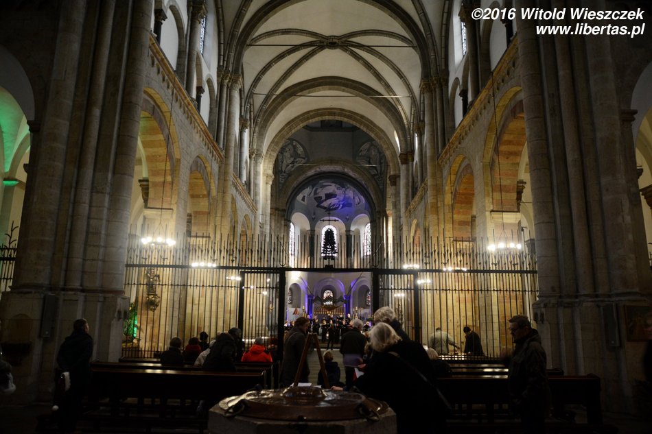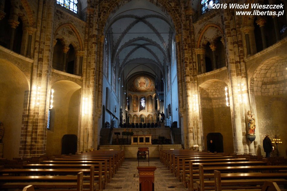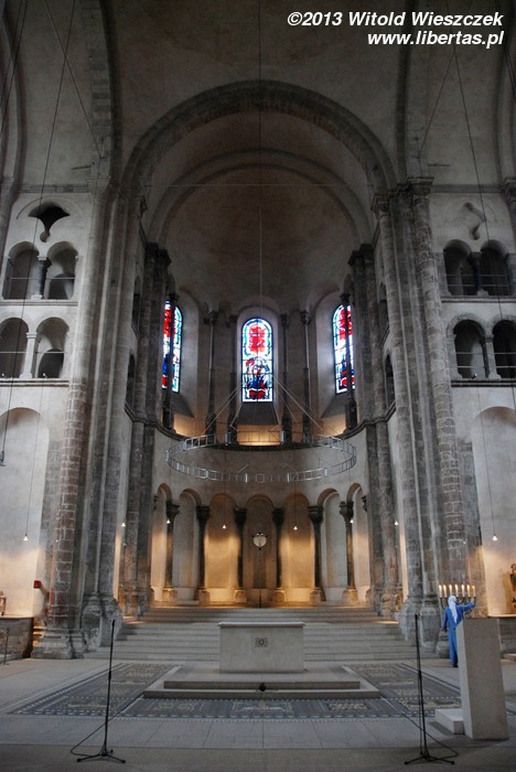 W drugiej połowie XI wieku wzniesiono prezbiterium z dwiema wieżami (w XIII wieku zostało przebudowane, a wieże podwyższono), a w latach 1219–1227 mniej więcej na zarysie dawnego owalnego mauzoleum wzniesiono najbardziej charakterystyczną część świątyni – dekagonalny korpus nawowy, który pod koniec XIV wieku został nakryty nowym gotyckim sklepieniem. Gdy powstawał, była to największa taka budowla na północ od Alp. W czasie II wojny światowej kościół doznał poważnych zniszczeń, na szczęście się nie zawalił, a po wojnie został odbudowany tak, że możemy go dzisiaj podziwiać. A jest na co popatrzeć!