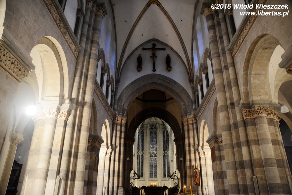 Umiejący liczyć mogą się czuć nieco zaskoczeni, wszak pisałem, że romańskich kościołów Kolonii jest dwanaście. Owszem, jest. Kościół Świętego Herberta został zbudowany w latach 1891–1896, jest więc kościołem neoromańskim. W trakcie II wojny światowej został znacznie uszkodzony, ale w latach 1949–1951 został odbudowany, choć w uproszczonej formie. Ciekawostką jest, że jego patron – św Herbert – jest również patronem Deutz – dzielnicy, w której kościół wybudowano. Jeśli zostanie Wam trochę czasu, to można go odwiedzić, żeby porównać z poprzednimi i ewentualnie odnaleźć w nim charakterystyczne romańskie elementy, sprawdzając w ten sposób, co wynieśliśmy ze zwiedzania Kolonii. Mam nadzieję, że ta wirtualna wycieczka była nie tylko pouczająca, ale i Waszym głodnym duszom dostarczyła wiele cennych protein! Przy okazji koniecznie zobaczcie te cuda na własne oczy. Wrażliwi na piękno na pewno nie będą rozczarowani, a wielbiciele architektury romańskiej będą wniebowzięci!