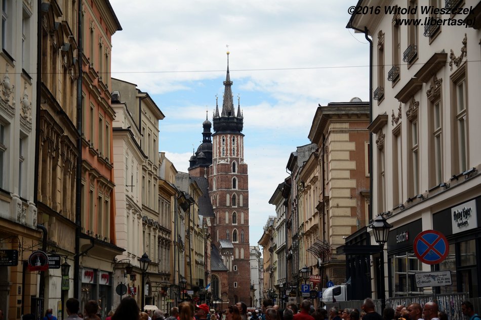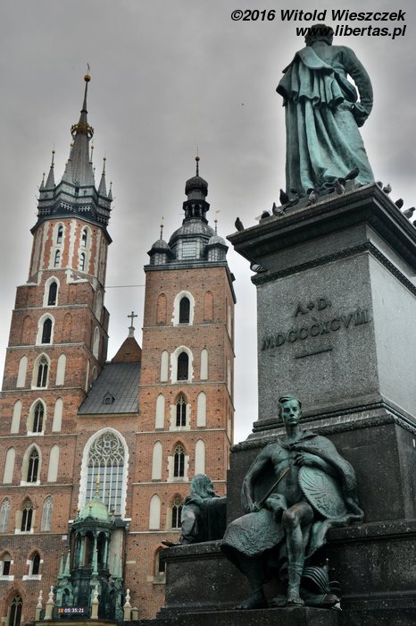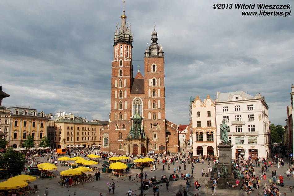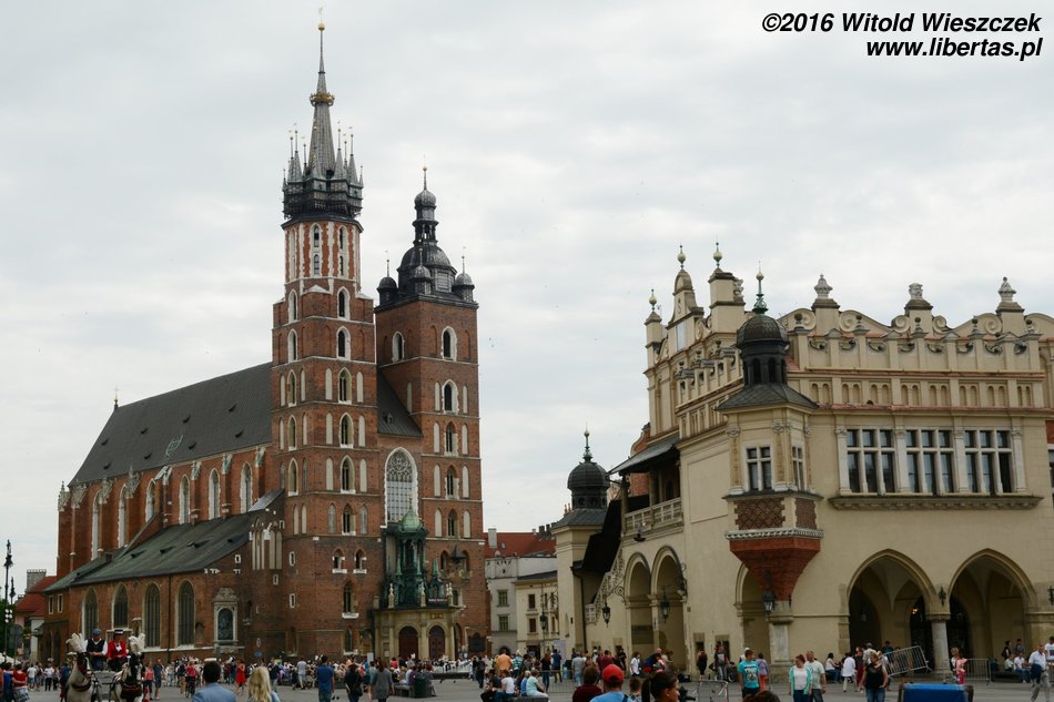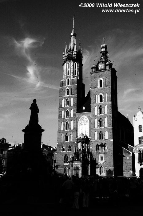 Kościół Mariacki to jeden z najważniejszych i najstarszych zabytków Krakowa. Pierwsza murowana romańska świątynia stanęła tutaj (w miejscu wcześniejszej drewnianej) na początku XIII wieku z fundacji biskupa krakowskiego Iwo Odrowąża, niestety wkrótce została zniszczona podczas najazdu tatarskiego. Budowę kolejnego, tym razem już wczesnogotyckiego kościoła, częściowo na poprzednich fundamentach, rozpoczęto w roku 1290. Świątynię konsekrowano około roku 1320. Później była wielokrotnie przebudowywana, w latach 1355–1365 wzniesiono wydłużone prezbiterium z wysokimi oknami, a pod koniec XIV wieku obniżono mury naw bocznych i dodano duże okna, nadając jej obecny, bazylikowy charakter. W połowie XV wieku dobudowano boczne kaplice i podwyższono północną wieżę, a w latach 1477–1489 kościół wzbogacił się o nowy ołtarz główny dłuta Wita Stwosza – jedno z najwybitniejszych arcydzieł późnego gotyku. Ołtarz ma 13 metrów wysokości (pierwotnie miał 18) i poświęcony jest Matce Boskiej.