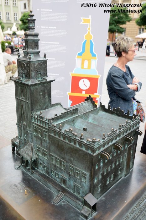 70-metrowa gotycka Wieża ratuszowa jest jedyną pozostałością po okazałym i godnym królewskiego miasta średniowiecznym ratuszu. Budynek powstał na przełomie XII i XIII wieku, później rozbudowywany i ozdabiany (na attyce znajdowały się portrety polskich królów) przetrwał aż do wieku XIX. Dawna stolica dumnego królestwa pod zaborami ubożała i niszczała, podupadające budynki wyburzano, a wyrok padł między innymi na przylegający do ratusza spichlerz. Niestety, jego wyburzenie spowodowało pękanie ścian samego ratusza, który podzielił los spichlerza.