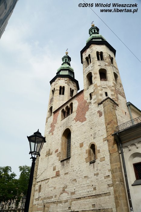 Burzliwa polska historia nie była łaskawa dla romańskiej architektury, tym bardziej cieszy na naszej drodze ta jedna z najstarszych świątyń w Krakowie. Kościół św. Andrzeja został wzniesiony w latach 1079–1098 z fundacji niesławnego palatyna Sieciecha. Wprawne oko zwróci uwagę na ciężkie kamienne mury (grubości 1,6 metra) i wąskie okienka będące właściwie otworami strzelniczymi. Wszystko to dlatego, że trudne czasy wymagały od kościoła spełniania nie tylko funkcji religijnych, ale i obronnych. Wygląda na to, że kościół św. Andrzeja swoją rolę spełnił, bo podobno podczas najazdów tatarskich wielu mieszkańcom Krakowa udało się skutecznie znaleźć tutaj schronienie. No i dodajmy, że jako jedyny krakowski kościół pamiętne tatarskie wizyty przetrzymał.