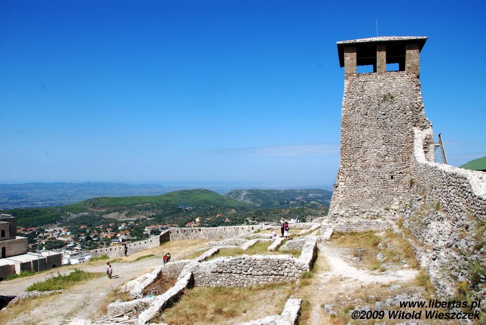 Na teren warowni wchodzi się przez długą, bardzo dobrze zachowaną bramę. Po prawej stronie znajdują się pozostałości meczetu, a po lewej nowy budynek, w którym znajduje się muzeum Skanderbega. Cena biletu 200 L (2011). Idąc w górę za muzeum, po prawej stronie znajdziemy dwie restauracje, gdzie możemy delektować się piwem Tirana, kontemplując jednocześnie piękne krajobrazy.