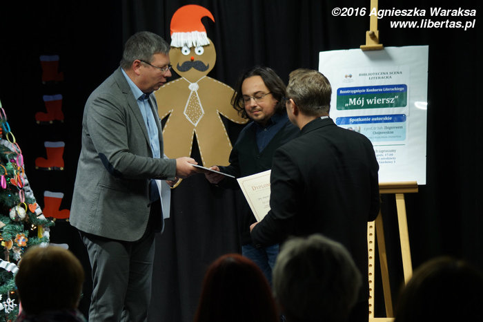 Profesor Zbigniew Chojnowski, i trzeba to podkreślić – zwyczajny, Uniwersytetu Warmińsko-Mazurskiego, poeta i krytyk literacki, otrzymał z rąk dyrektora Witolda Gagackiego mikrofon i rozpoczął opowieść. Nie od parady odniosłem wrażenie, że znajduję się tego zimowego, wtorkowego wieczoru gdzieś w małej wykładowej salce na kursie kreatywnego pisania, a nie w Czytelni dla Dzieci i Młodzieży Miejskiej Biblioteki Publicznej w Kętrzynie.