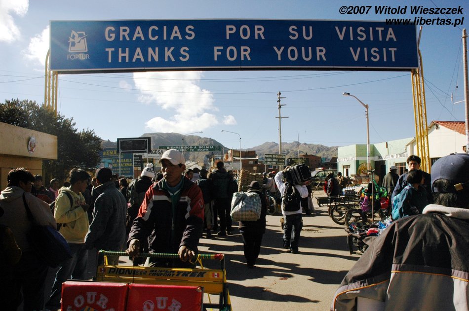 The border of Bolivia we reach in the morning. We cross it in the city called Desaguadero; it is our first land border in America and thus we are not used to it. We get off a bus and stand in a long queue. Before our passports are stamped and we get back on the bus, we will stop at another four counters, fill out two forms and see a few interesting things.