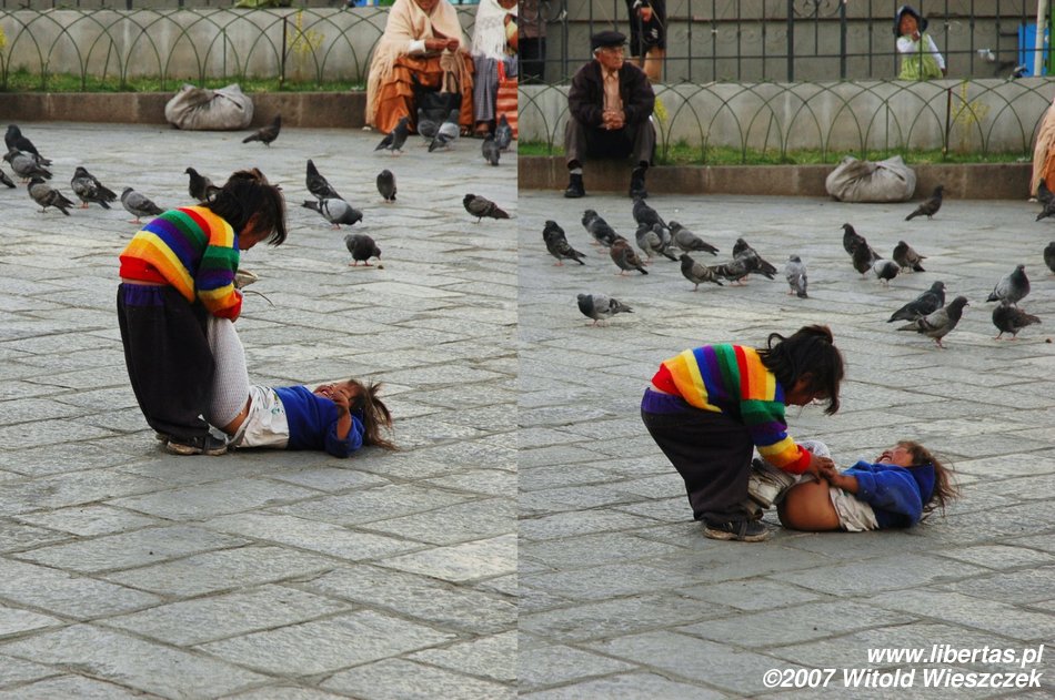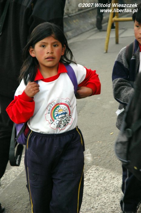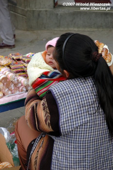 I’m not sure but I have a feeling that there isn’t here any institution in sort of a nursery school; children are always with their mothers who, in most cases, wear a scarf on their back. When children grow up a little bit, they help their mother with her wayside business... Once, I became speechless at the sight of a little girl who was doing her homework on her knees near the main street, aforementioned El Prado, in fumes and noise of the buses going by... I didn’t even take a picture...