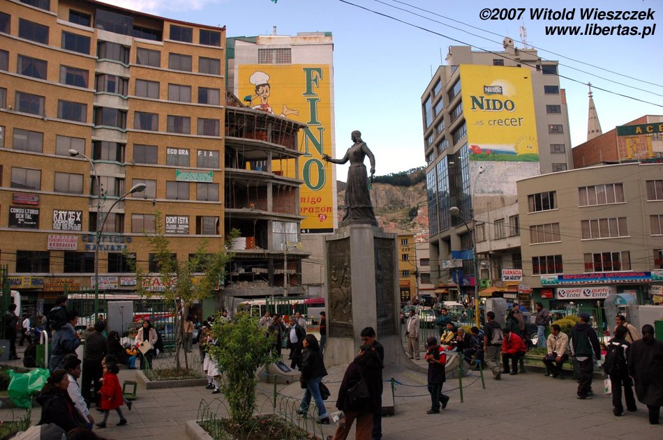 In the street you can buy everything, meat, books and even an iron! All of this you can acquire even when it’s well after dark! The most charming place is Plaza Murillo, the square named in memory of Pedro Domingo Murillo – the leader of an independence uprising who ended up being hanged by the Spaniards on this square. In 1827, two years after regaining independence, in order to commemorate the decisive, winning battle, the name of the city was changed to the short La Paz. It seems to me that the monument standing in the centre of the square has also some connection with this.