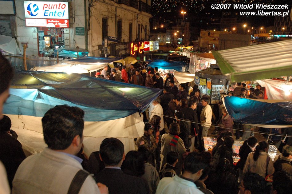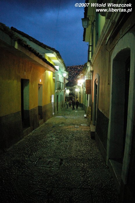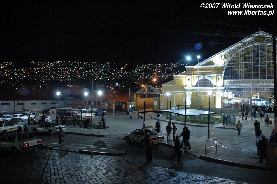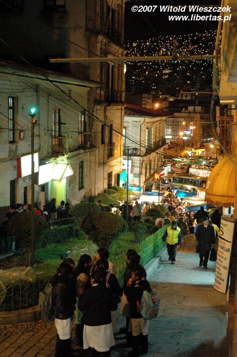 Contrary to the all stuff that is written in different guidebooks, staying in Peru and Bolivia isn’t as dangerous as it is believed. I was walking alone in La Paz almost till midnight! While going back to a hotel, I happened to walk, by chance, into some completely empty and almost totally dark alley! Ok, ok, I do admit that once I thought that someone is following me and is about to kill me... but as Kazik (a Polish lead singer) was singing: „I was scared to death but nothing happened to me :)”. Nobody mugged or robbed me (as you can see I had my camera outside) and no Indian woman in a hat raped me! Buenas noches.