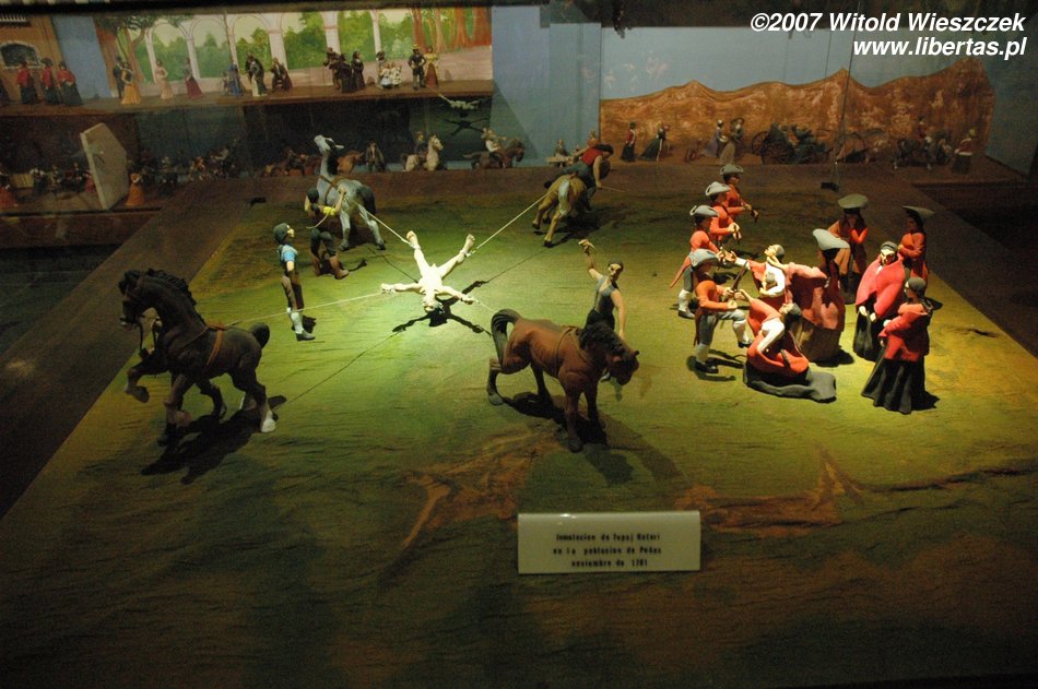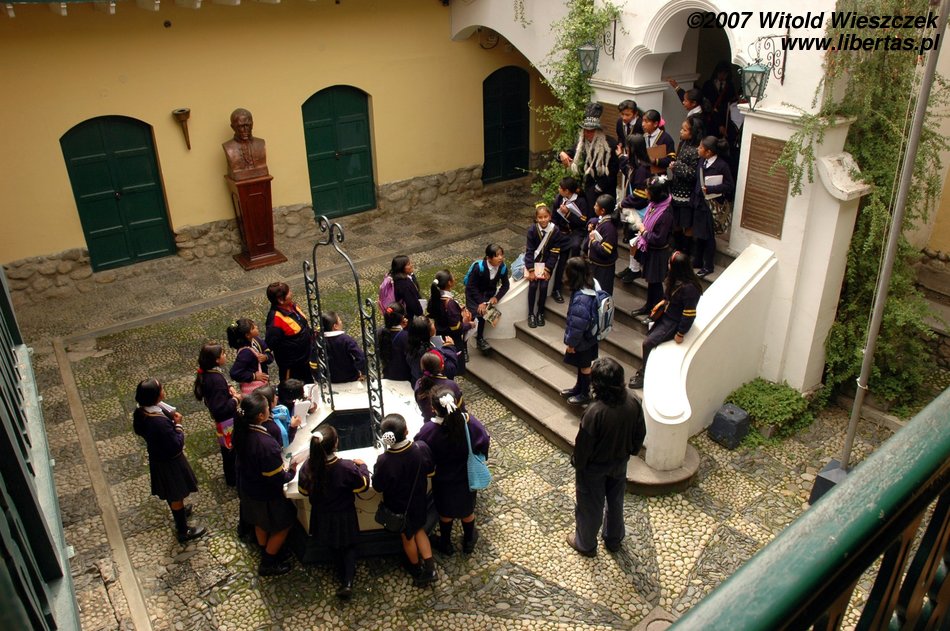 I managed to do one more museum the name of which, unfortunately, I don’t remember; there were some masks and brutal scenes of Bolivian history where, for example, some poor guy is being torn apart by Spaniards using horses. Museums are opened till 6 p.m. but I – being happy – didn’t have a watch of course, so well after closing I barged into another museum dedicated to Pedro Domingo Murillo... I was a little bit surprised not being welcomed by anyone, especially when the door was closed... nevertheless I was entitled to enter the museum having a ticket from the previous museum, so I began my tour when suddenly a guard jumps out and yells at me... Salida, salida!! Maniana!! So maniana... buenas noches.
