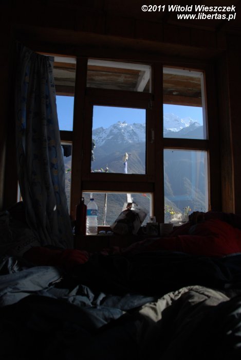 W Kyanjin Gompa małych hotelików czy pensjonatów nie brakuje. Właściwie chyba większość zabudowań wioski to właśnie większe lub mniejsze noclegownie. Ceny pokoi, niezależnie od standardu, są wszędzie bardzo podobne, czyli tradycyjnie od 0 do 300 Rs. Różne są tylko ceny posiłków, więc (choć może brzmi to zabawnie) poszukując noclegu, zaglądaliśmy między innymi do menu.