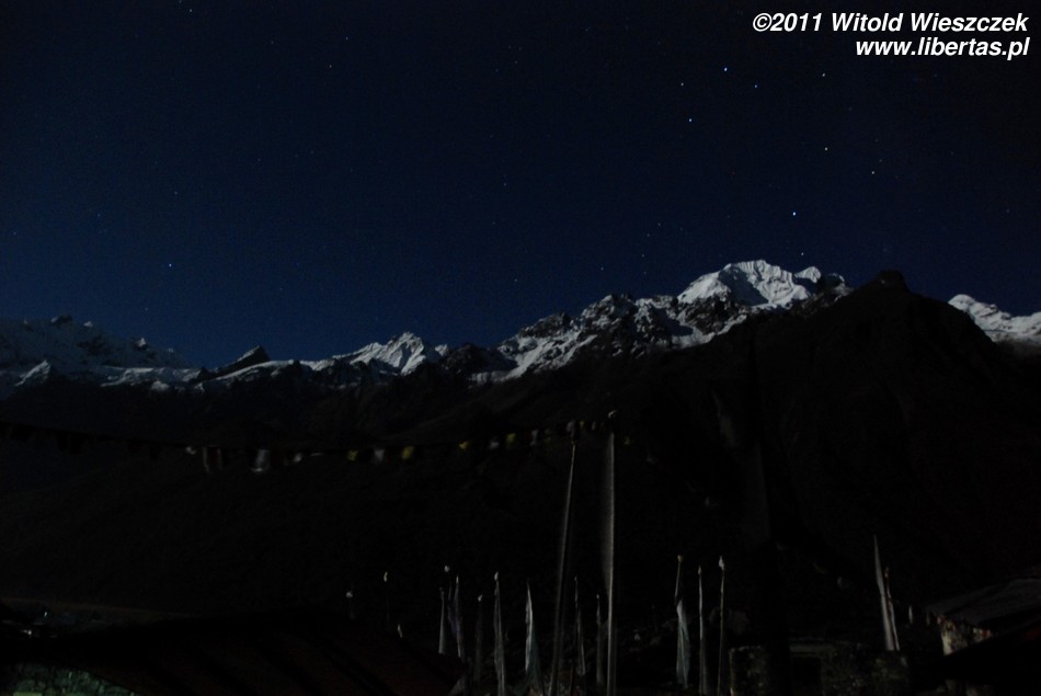 Czasem aż trudno oderwać oczy od lśniących na tle granatowego nieba szczytów, które są dobrze widoczne nawet nocą, a to dopiero zapowiedź możliwych atrakcji, z Kyanjin Gompa możemy sobie bowiem urządzić kilka bardzo atrakcyjnych wycieczek. Na zdobycie czekają m.in. szczyty Kyanjin Ri (4773 m n.p.m.) i Tsergo Ri (4984 m n.p.m.), a w ciągu jednego dnia bez jakiegoś specjalnego sprzętu biwakowego osiągalna jest również Langshisha Kharka (4131 m n.p.m.). Są także trudniejsze i bardziej wymagające cele, np. przełęcz Ganja La (5122 m n.p.m.).