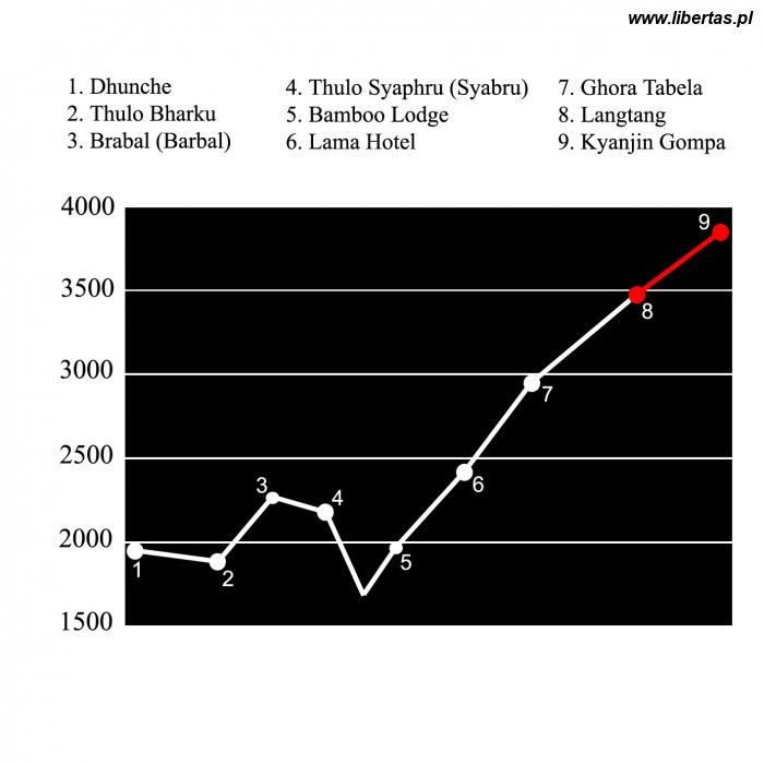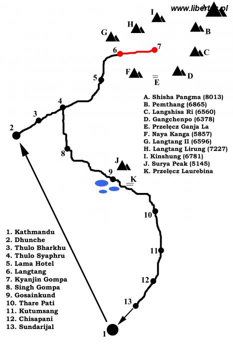 Szlak: Langtang – Mundu – Sindum – Yamphu – Kyanjin Gompa.