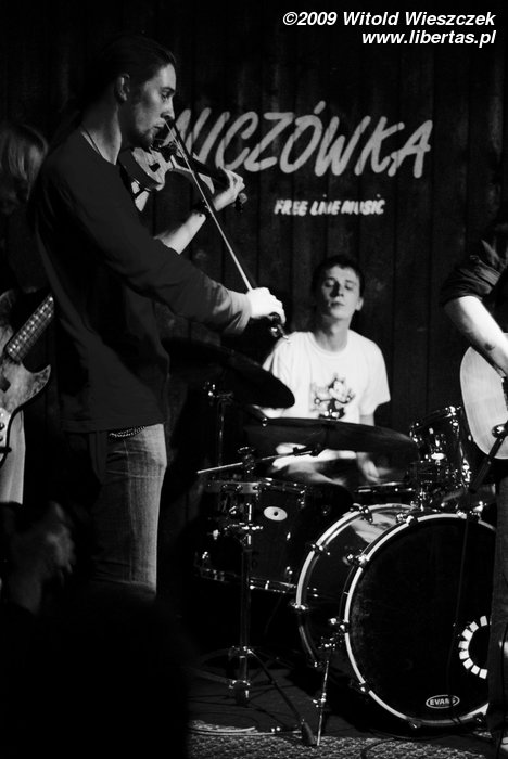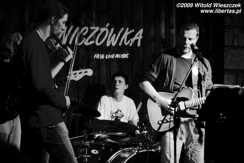Droga Ewakuacyjna to bardzo młoda grupa z Siemianowic. W tym roku próbowali powalczyć na Rawie Blues o dużą scenę. Co prawda tym razem się nie udało (wygrali Gosia Werbińska i Błażej Pawlina), ale dzień i tak mieli pracowity, bo prosto ze Spodka przyjechali zagrać w Leśniczówce. Obok autorskich kompozycji usłyszeliśmy w ich wykonaniu kilka kowerów, takich jak Fever czy Stormy Mondey.