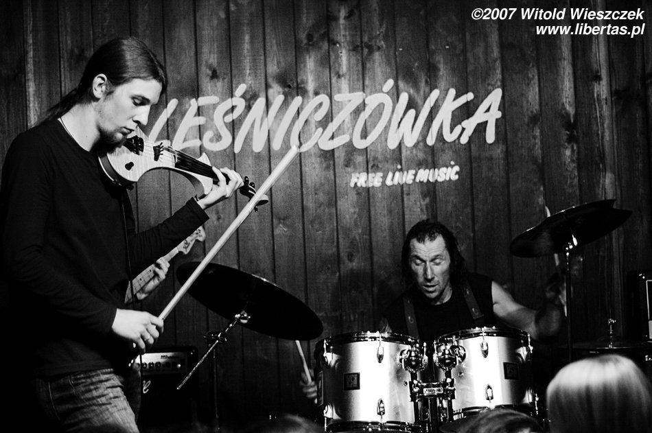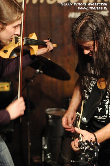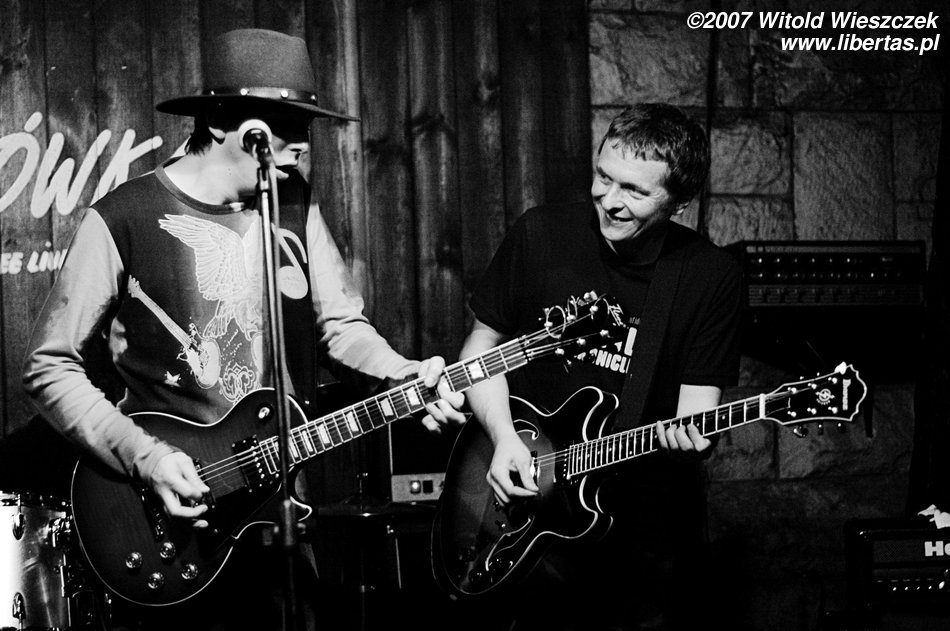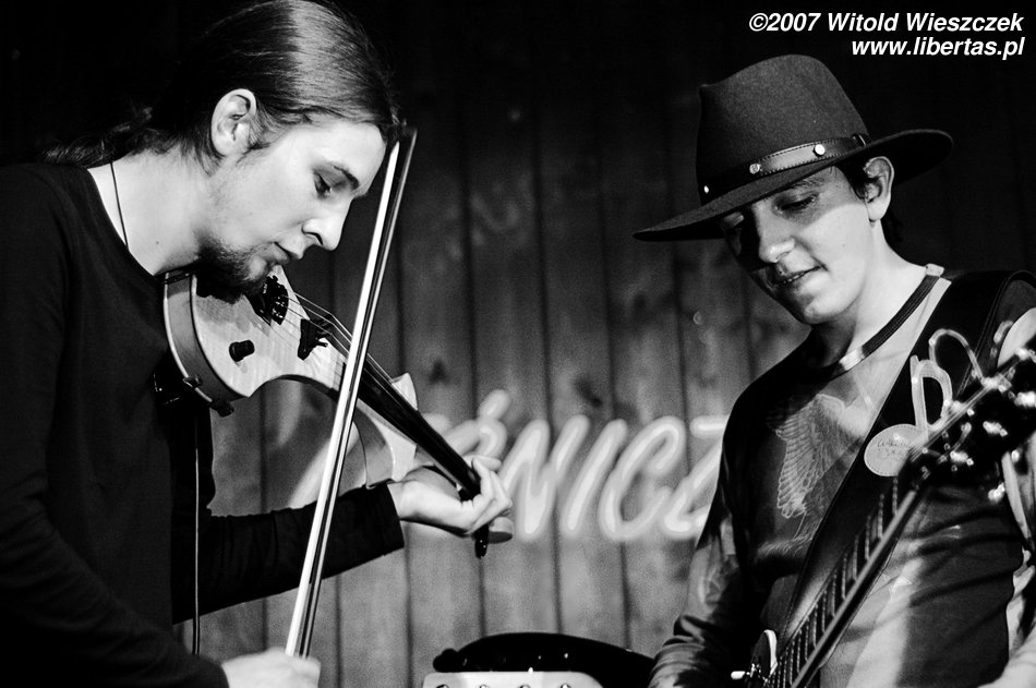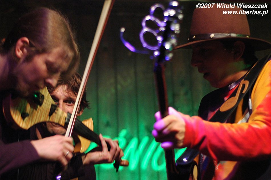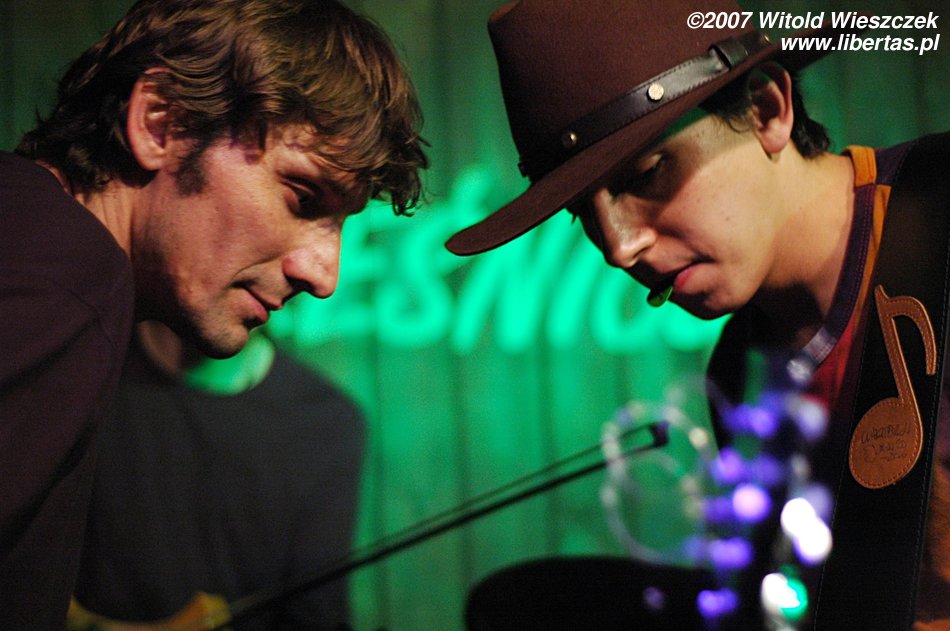 Jak widać, tego wieczoru interesujących połączeń nie brakowało, Kajetan grał smyczkiem, ale także butelką po piwie marki Tatra, a nawet jednocześnie na gitarze swojej i Roberta!