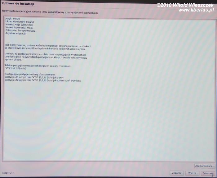 W przypadku instalacji systemu na komputerze w którym mamy zgromadzone ważne dane, należy zachować ostrożność! Czytać komunikaty i nie wykonywać działań których nie rozumiemy. Autor artykułu nie ponosi odpowiedzialności za bezmyślne i niedostosowane do zastanych warunków zastosowanie artykułu, w szczególności za utratę danych, spowodowaną nie utworzeniem ich kopii, lub wykonaniem tej czynności nieprawidłowo!