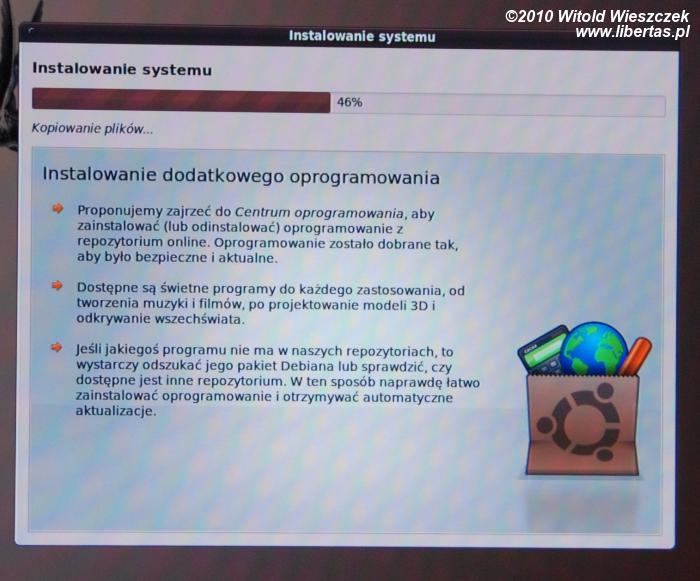Musimy zacząć od zdobycia płyty instalacyjnej. Dzisiaj Internet jest już tak powszechny, że najszybszym i najwygodniejszym sposobem będzie po prostu ściągnięcie obrazu .iso i nagranie go na płytę. W chwili gdy to piszę, najnowszą polską wersją jest Ubuntu 9.10 - Karmelkowy Koliberek. Można go pobrać z oficjalnej strony projektu: