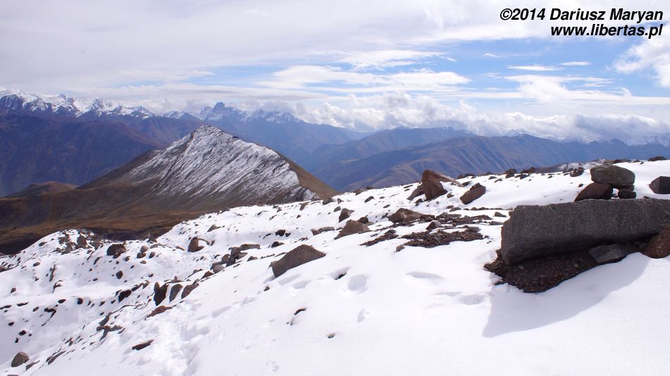 Ten dzień był zdecydowanie jednym z najbardziej udanych podczas tej wycieczki. Najbardziej baliśmy się, że w ogóle nie zobaczymy Kazbeka, co wielu innym turystom się przydarzyło. W Swanetii Uszbę i Szcharę widzieliśmy tylko częściowo, na ile kapryśne chmury pozwoliły. Teraz mięliśmy pełną panoramę.