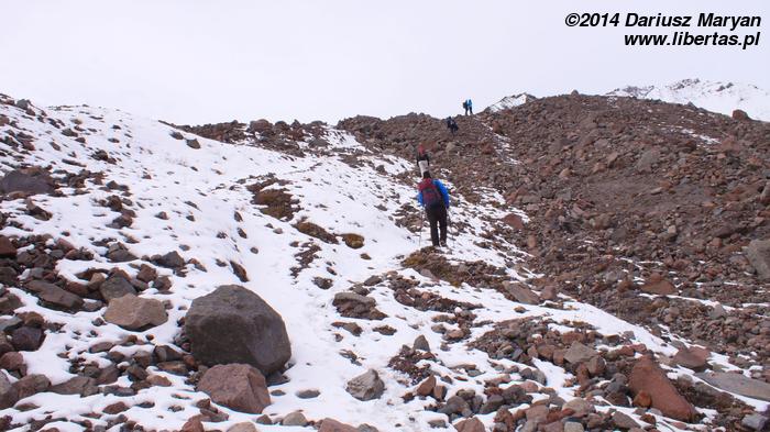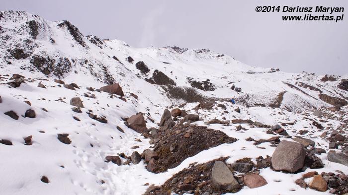Naszymi głównymi zmartwieniami były dwie kwestie. Czy odpowiednio grubo się ubraliśmy i czy nie zgubimy drogi. Rano było dość chłodno zwłaszcza na tej wysokości, ale na szczęście ten dzień był słoneczny i ciepły jak na październik, tak więc dwie warstwy ubrań wystarczyły w zupełności. Droga na lodowiec też nie była zbyt skomplikowana, wystarczy raz wejść na odpowiedni szlak i praktycznie nie można się zgubić.