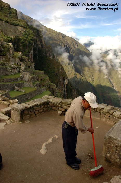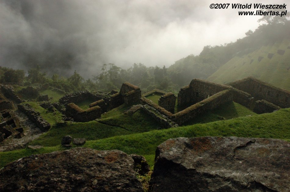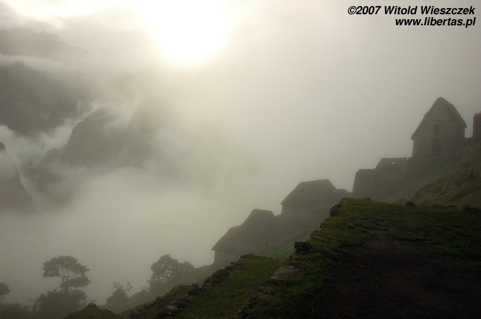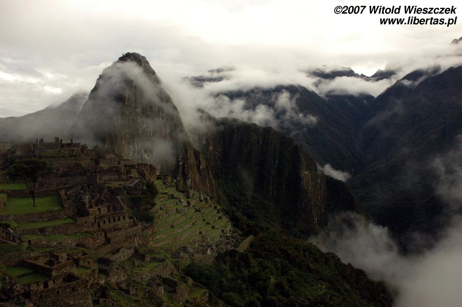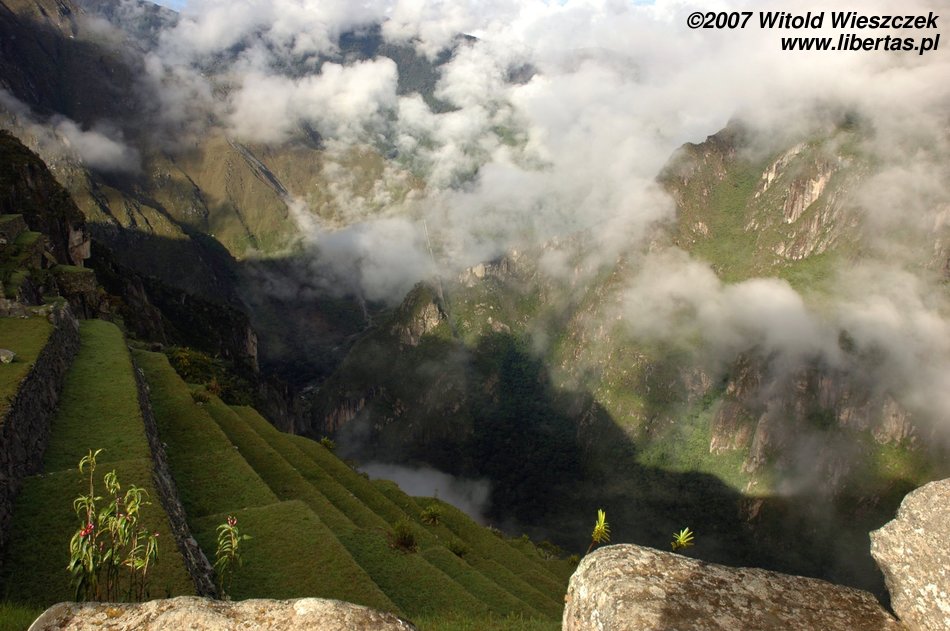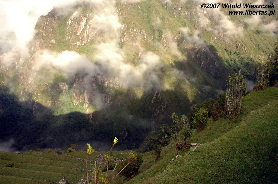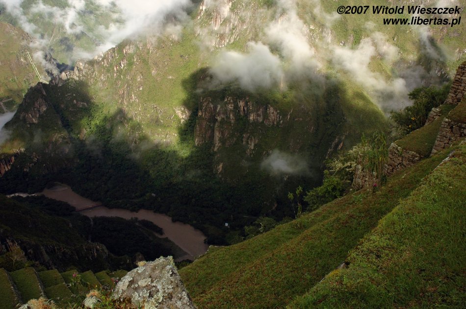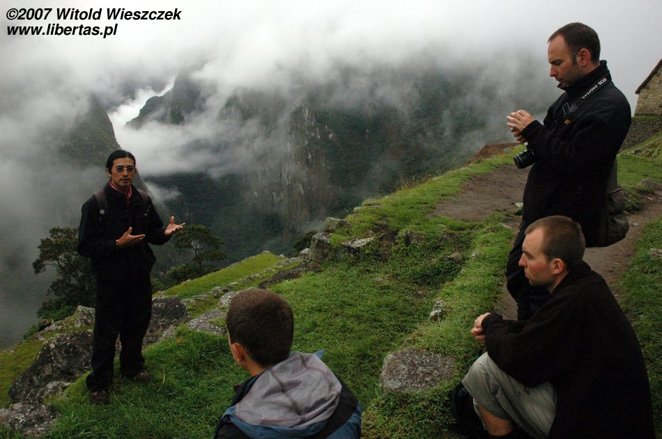 Lenin was still talking; all-embracing whiteness was decreasing in intensity, the ruins of the city were slowly coming into our view, then Waynapicchu towering over the place and finally neighbouring mountains and the river Urubamba down below... It was as if a curtain in a theatre was slowly going up, almost magic. This time we were lucky!