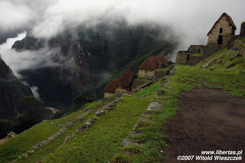 Today we are going to visit a place that we cannot miss while travelling in Peru – Machu Picchu. It is good to be there as early as possible, before the swarms of tourists show up! Now, everywhere is white, we are standing inside of a big cloud, a small house is emerging in the distance... I am starting to worry we will not see anything, but Lenin, as if nothing had happened, slowly starts talking about the place...