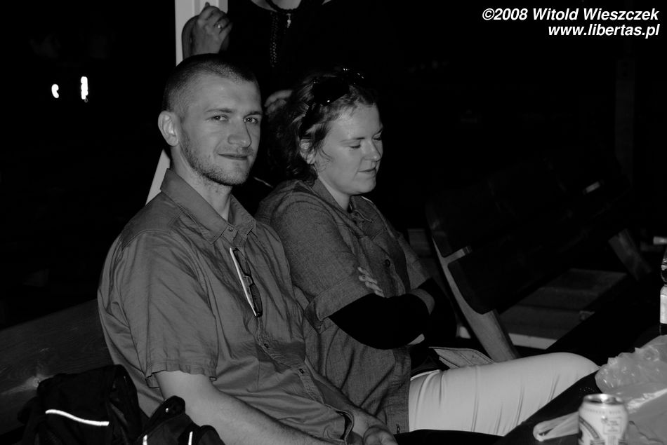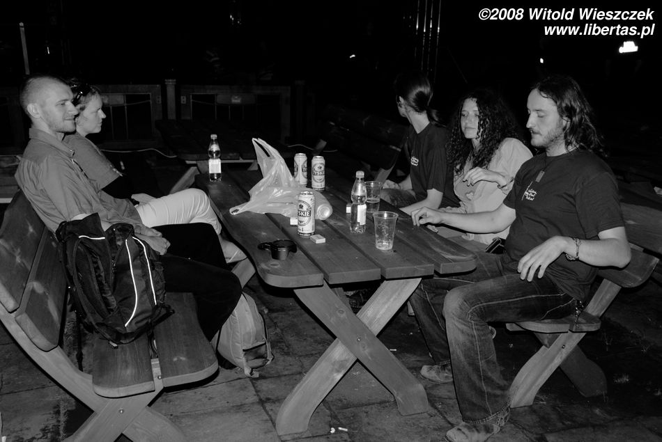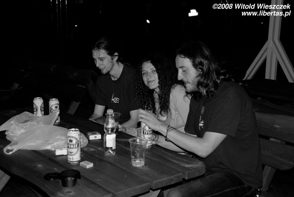 W ramach obowiązków służbowych po koncercie chłopaki rozdawali autografy zapatrzonym w nich małolatom, ale w końcu fajrant! Idziemy się napić! Gdzieś tak od koncertu świątecznego (grudzień!) umawiamy się z Jankiem na piwo i co? Pierwsze piwo od ponad pół roku pijemy 300 km od domu, w Iwoniczu! Na zdrowie!
