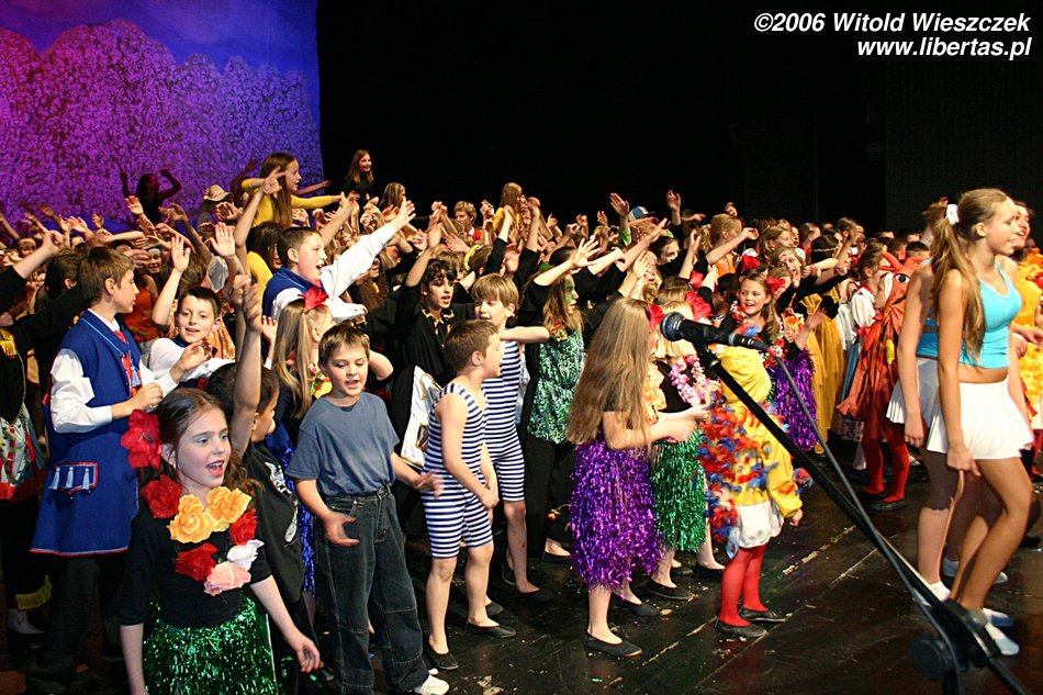 Za kulisami wszyscy przestępowali z nogi na nogę, niecierpliwie czekając na wielki finał. Dopiero kiedy cała scena wypełniła się mniejszymi i większymi artystami, można było w całej okazałości podziwiać wszystkich uczestników tego przedsięwzięcia. Bardzo się cieszę, że MDK w Tychach tak prężnie działa, że istnieje miejsce gdzie dzieci i młodzież mogą w twórczy sposób spędzać wolny czas. A efekt, efekt jest po prostu imponujący! Brawo!