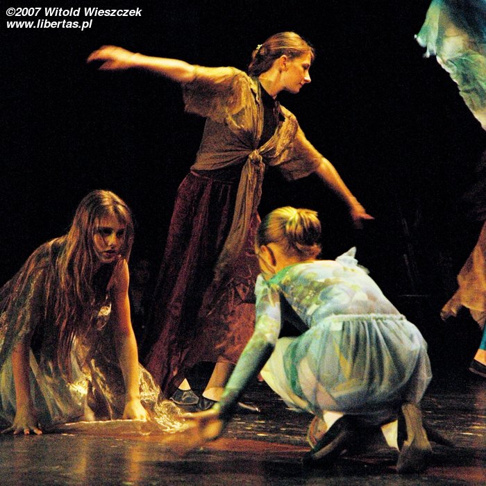 Następnie zespół ruchu i pantomimy WAMPA w programie pt. Halo, życie jest piękne zatańczył do nieśmiertelnej Bohemian Rhapsody Queenu. Później scena należała do TYSZAN, prowadzonych przez Panią Marię Ławniczek, którzy energicznie wybijali swoimi butami rytm na deskach teatru. Spódnice wirowały, aż mogło się w głowie zakręcić. Najwyraźniej się starzeje, skoro zaczynają mi się podobać tańce ludowe.
