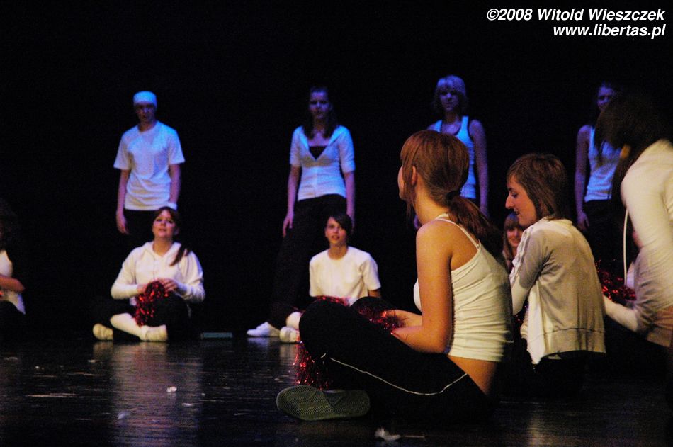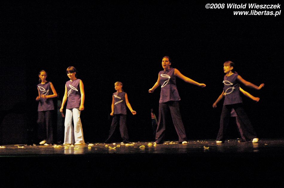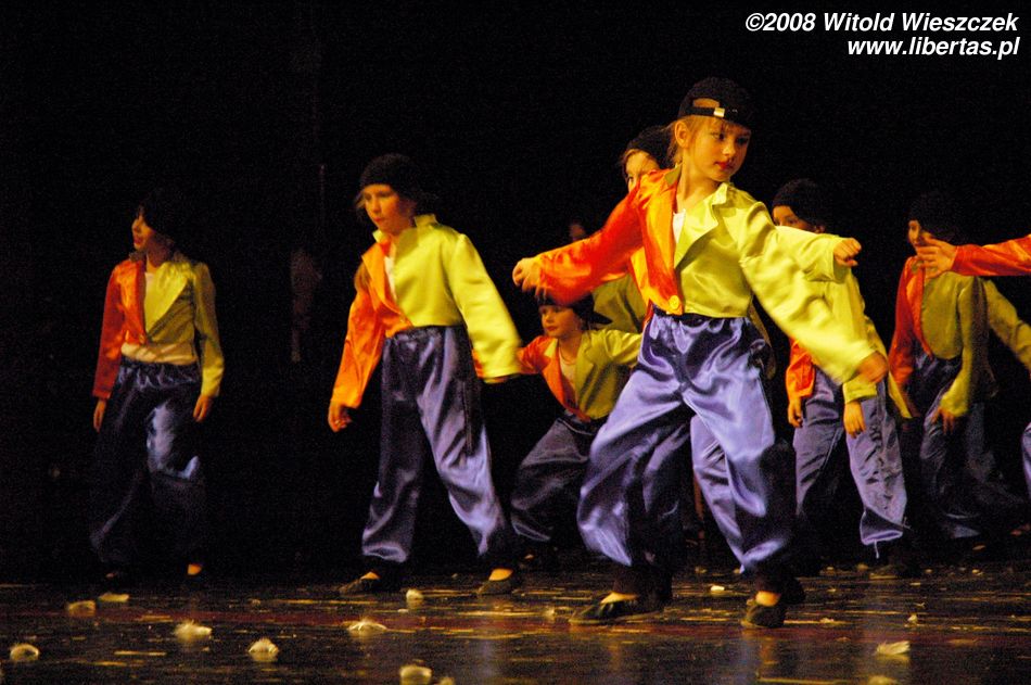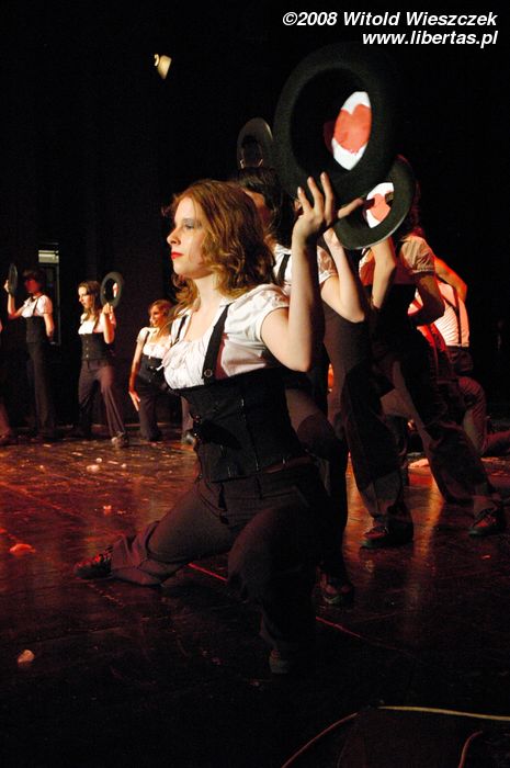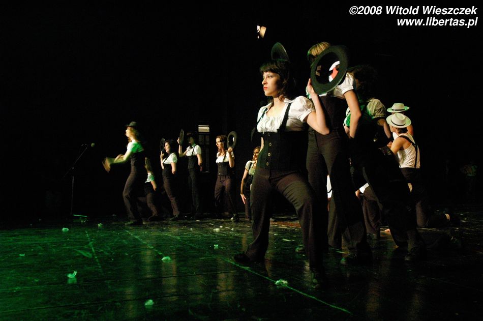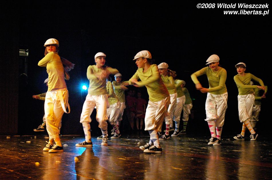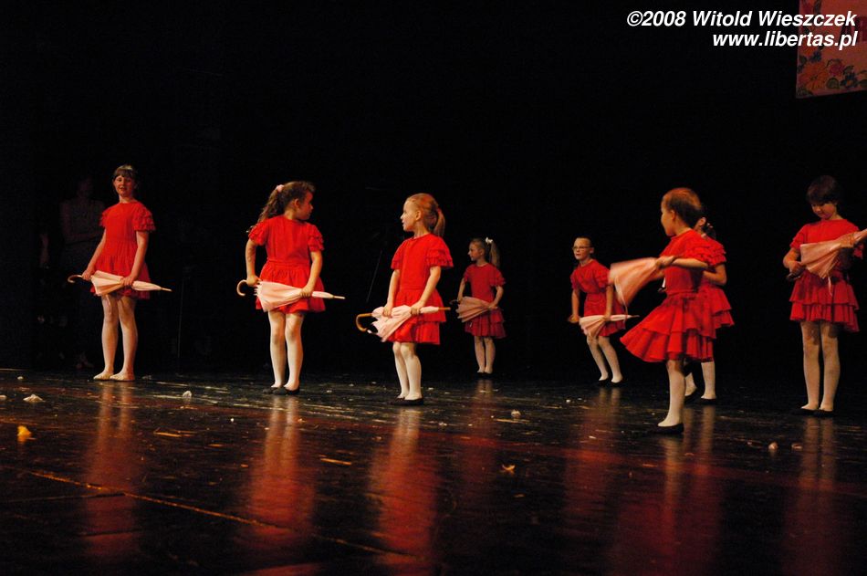Następnie przyszedł czas na taniec z parasolkami, a po nich starszy zespół pani Joanny Sajewicz, czyli Tip Top 1, w układzie pt. Wybory Miss. W tym zespole tańczą z kolei licealistki do lat osiemnastu.
