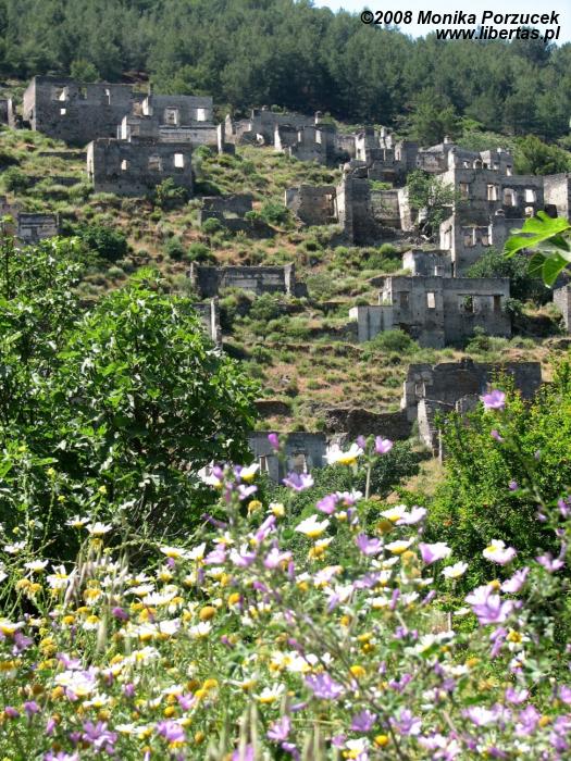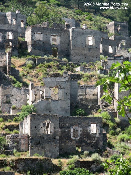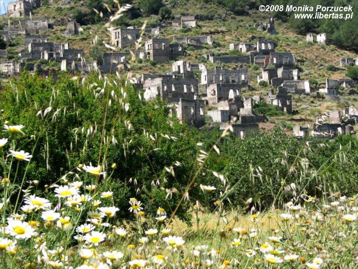 Naszym celem jest oddalone jakieś 8 km na południe od Fethiye opuszczone miasto Kayaköy (Karmylassos) nazywane też dawniej Levissi. Zyskało ono nazwę „Miasta Duchów” i to wcale nie z tego powodu, że w mieście tym straszy. Niegdyś zamieszkiwali je Grecy, którzy przybywali na ten teren z wysp Morza Egejskiego. Po tureckiej wojnie o niepodległość w 1924 roku około 20 000 mieszkańców zostało zmuszonych do opuszczenia swoich domów. Przymusowo wysiedleni udali się na wyspę Rodos. Obecnie „straszy” nas smutny widok około 2 000 kamiennych domów, które nieustannie niszczy czas.