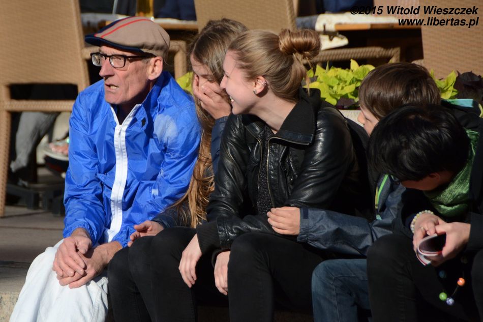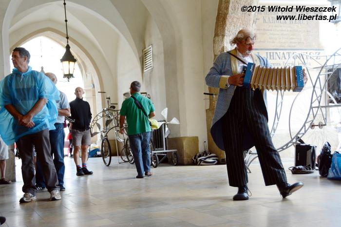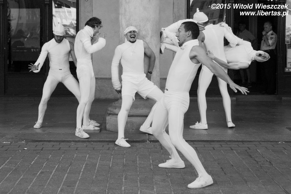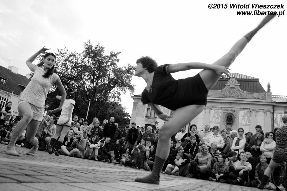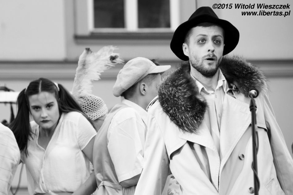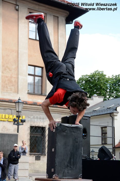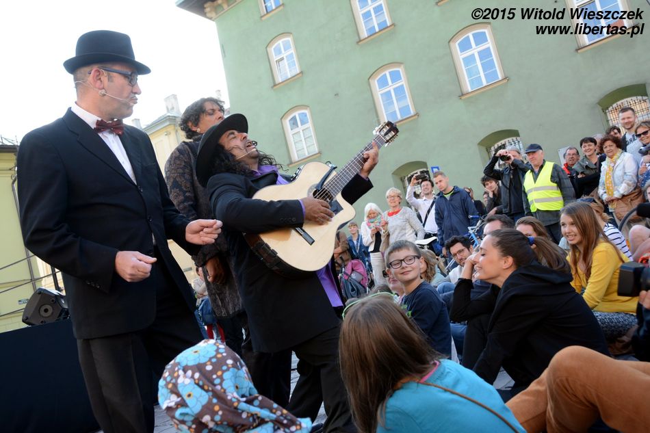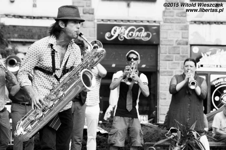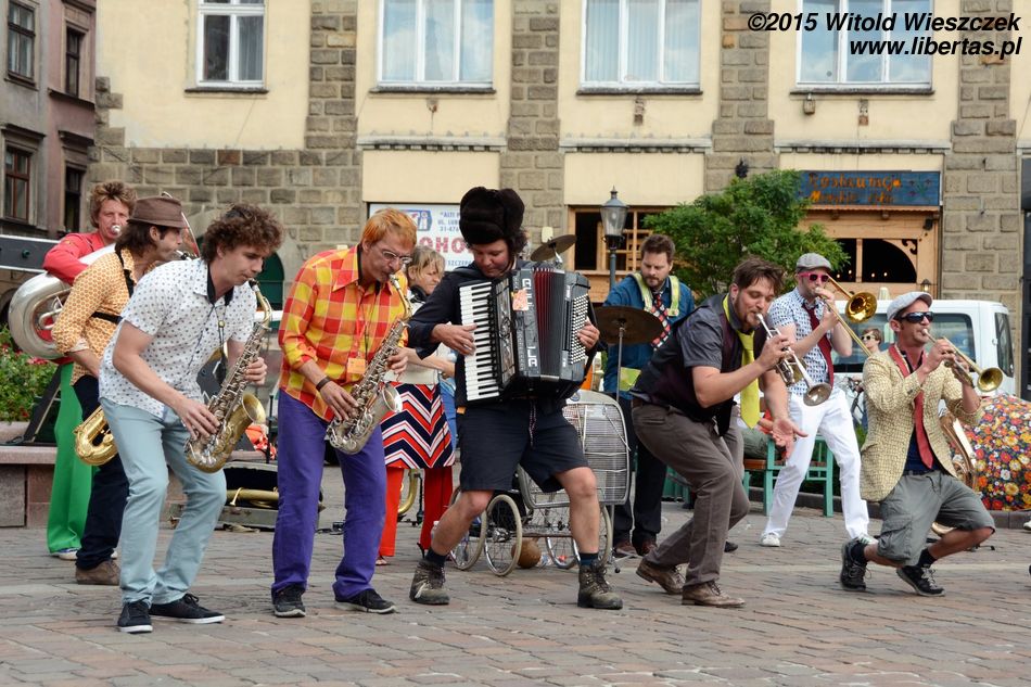 No ale samozachwyt nad naszymi artystycznymi zdolnościami szybko opadł, kiedy obok zaczęła grać prawdziwa orkiestra. W dodatku orkiestra międzynarodowa! Nie pamiętam już, z jakich krajów pochodzili muzycy, ale wydaje mi się, że nie tylko z Belgii i Francji, jak głosiła festiwalowa ulotka. Zdominowana przez instrumenty dęte orkiestra zaczęła skocznie przygrywać w wesoły, bałkański sposób, co najszybciej porwało do tańca dzieci. Z przyjemnością słuchałem i tupałem nogą, a dopiero teraz zastanawiam się, czemu nikt nie tańczył? Dlaczego tym razem widzowie nie wyszli z oddolną inicjatywą i się nie przyłączyli, nie zaczęli po Szczepańskim Rynku pląsać?