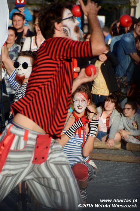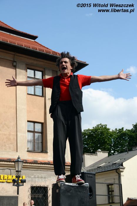 Aby zarażać swoim śmiechem, Aziz Gual przybył do Krakowa aż z Meksyku. Popisywał się żonglerką i innymi, wręcz magicznymi umiejętnościami i, jak większość klaunów, odbiorców swojej sztuki znajdywał głównie u dzieci. To chyba dobrze, że w tym roku wyraźnie więcej spektakli było adresowanych właśnie do najmłodszych, bo są na pewno liczną grupą wśród festiwalowej widowni.