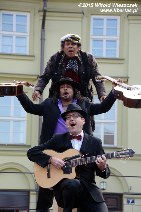 Coś mi jednak mówiło, że nie należy się poddawać i na występ tego tria wybraliśmy się ponownie następnego dnia. Warto było! Na scenie pojawia się trzech macho albo, sięgając do skojarzeń z klasyką kina Sergiusza Leone: Dobry, Zły i Brzydki. Gitary, piłeczki pingpongowe i genialne poczucie humoru. Muzyczne parodie przeplatające się z cyrkowymi popisami i akcja szybka jak w amerykańskim filmie. Jak dla mnie był to jeden z najciekawszych i najzabawniejszych festiwalowych występów. Z przyjemnością zobaczyłbym trio jeszcze raz, więc i Wam szczerze polecam. Ole!
