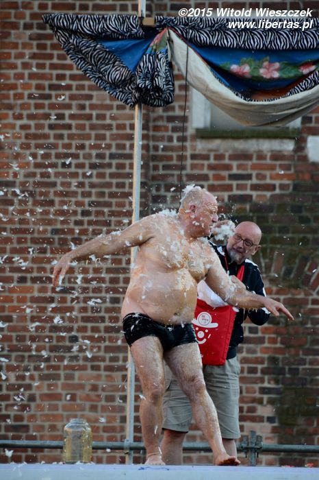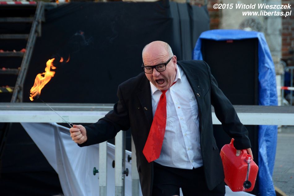 Kolejny klaun – Jango Edwards (a właściwie nawet duet klaunów, bo wspierał go młodszy kolega po fachu) – balansując swoim występem na granicy dobrego smaku, wystawiał wytrzymałość publiczności na sporą próbę. Miałem nawet chwile, gdy zastanawiałem się, czy artyści tej delikatnej granicy nie przekroczyli. Ale muszę przyznać, że ostatecznie śmiałem się szeroko, a bezkompromisowość i brak szacunku do czegokolwiek należy jednak pochwalić. W końcu klaun może zrobić wszystko, zwłaszcza to, na co sami czasem nie mamy odwagi.