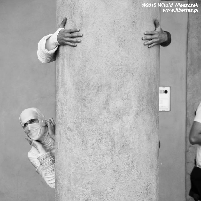Spóźniłem się! A kiedy przyszedłem, tłum szczelnie opatulał artystów. Do środka trudno było się z dziećmi wcisnąć, a z zewnątrz niewiele dało się zobaczyć. Do tego popełniłem błąd, sądząc, że przedstawienie będzie powtarzane, więc możemy je obejrzeć innego dnia. Nie było. Widziałem tylko krótki, ale bardzo obiecujący fragment. Prawdopodobnie było to jedno z najciekawszych spektakli całego festiwalu! Dlaczego zatem tylko raz i na takiej małej scenie, kiedy inne, czasem mocno odbiegające od akceptowalnego poziomu potrafią być powtarzane codziennie? Nie rozumiem. No i bardzo żałuję, że przegapiłem.