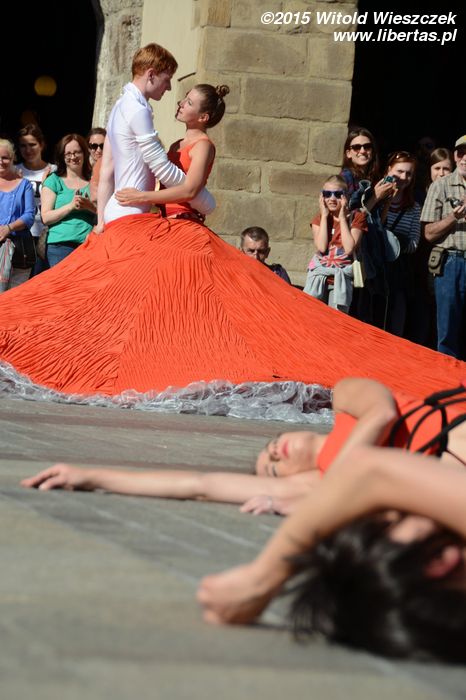 Relacje damsko-męskie to temat zawsze aktualny i zresztą poniekąd poruszany także w ubiegłorocznym występie przygotowanym przez Krakowski Teatr Tańca. Tym razem nie było żadnych chrząszczy, ale wyglądający jak plemniki mężczyźni i połączone czerwoną sukienką – niczym solidarność jajników – kobiety. Ich drogi już na początku przedstawienia się rozchodzą, by w finale ponownie się połączyć.