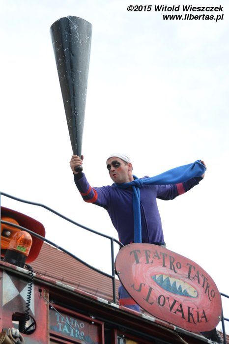 Swój pobyt na festiwalu rozpocząłem od zagrania na waltorni w orkiestrze Teatru Falkoshow. No właśnie, teatry uliczne często wyciągają nas z ulicy i zmieniają z widzów w aktorów. Tym razem aktorzy-amatorzy stanowili większość teatralnej trupy i, jak się okazało, przedsięwzięciu to nie zaszkodziło. Aż strach wyciągać z tego wnioski, ale może niedługo z Meksyku i Argentyny nie będą przyjeżdżały zespoły teatralne, tylko publiczność, która spontanicznie zmieni się w aktorów i wystąpi?