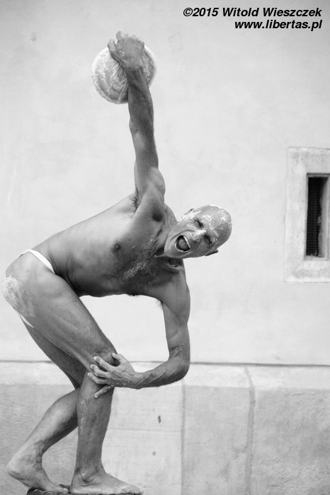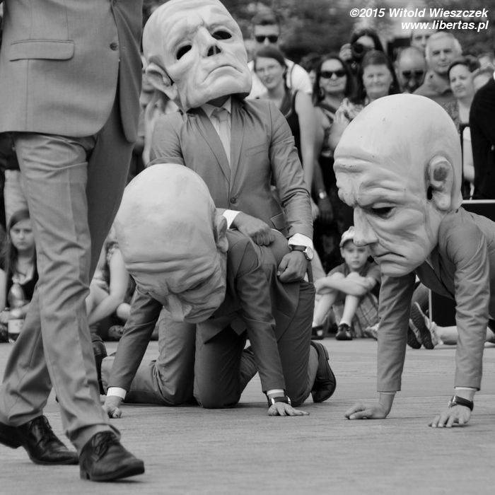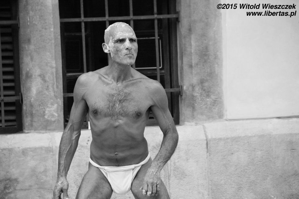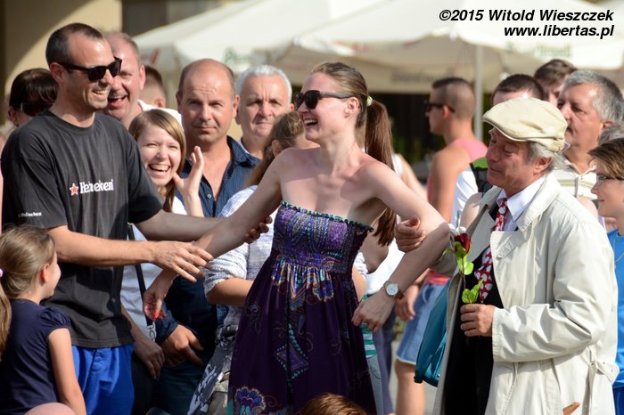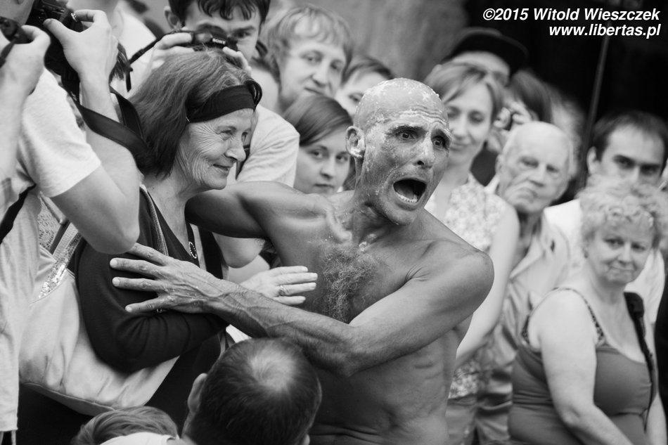 Ogromnym szczęściem dla spektaklu Loco Brusca znajduje wśród publiczności dziewczynę, która potrafi dotrzymać mu kroku. Tak jak już pisałem, na Festiwalu Teatrów Ulicznych często dochodzi do takich przemian widza w aktora, ale to była jedna z najbardziej udanych metamorfoz, jakie widziałem. Gratuluję odwagi. Na długo w pamięć zapadnie mi również końcówka spektaklu, w której Loco Brusca cofnął nas trochę w czasie, zmieniając się w jakiegoś naszego dawnego przodka. I zrobił to naprawdę perfekcyjnie!